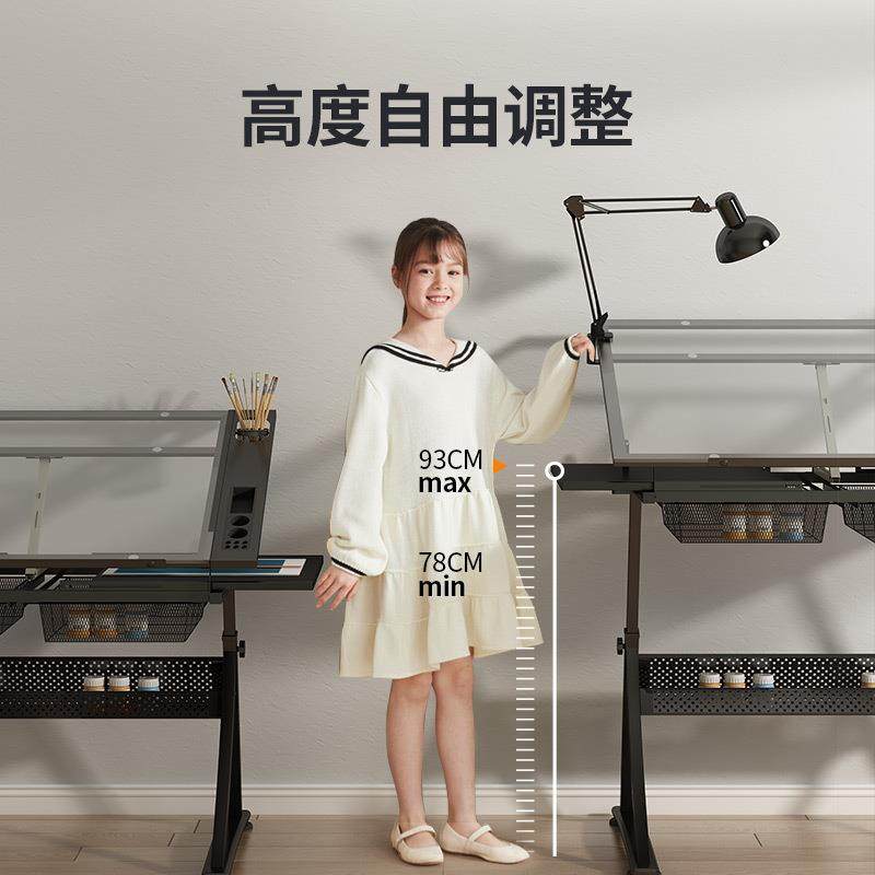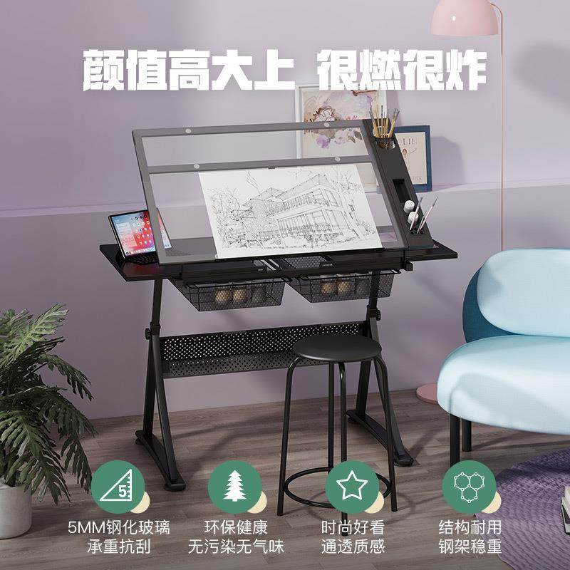 📚 玻璃可升降绘画桌绘图书画画图画画美术电脑设计师书桌工作台桌子
