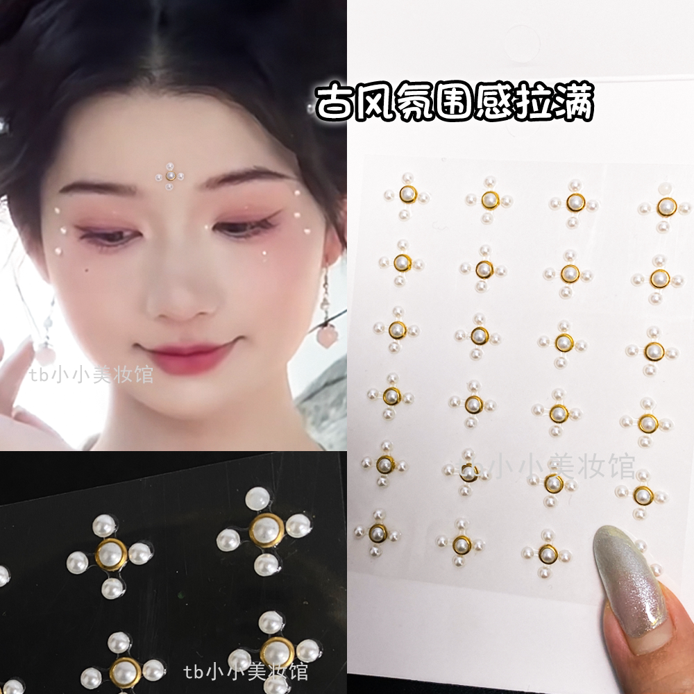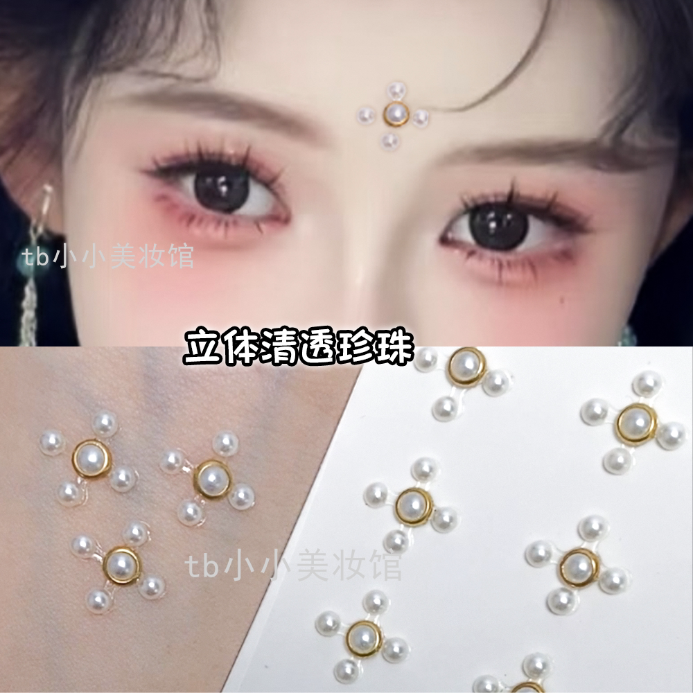 📚 额头珍珠贴花眉心花钿古风汉服妆容儿童节舞台妆脸上眼妆饰品贴钻