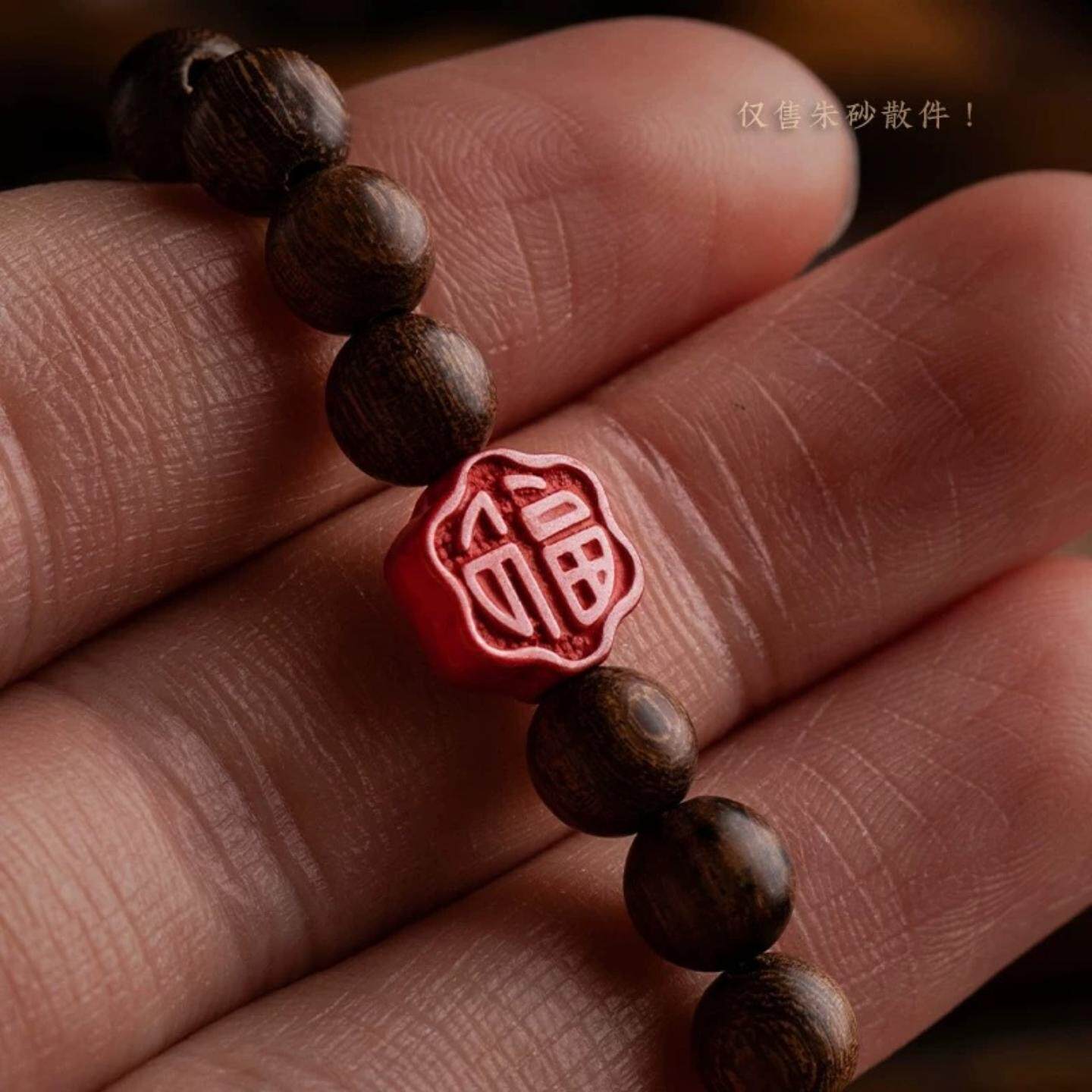 📚 帝王砂朱砂福字配件帝王砂配珠diy礼物手串配饰福报平安低含量