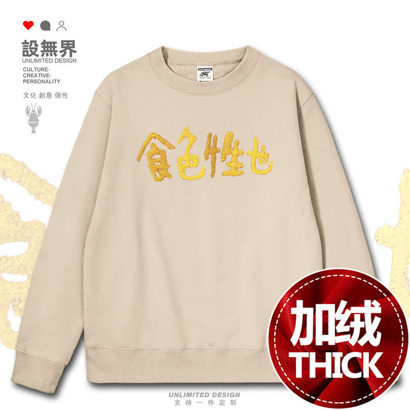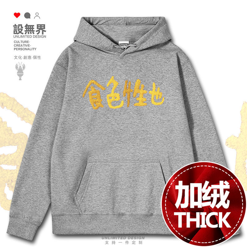 📚 粤语俗语食色性也广东文化趣味文字休闲连帽卫衣男女0018设 无界