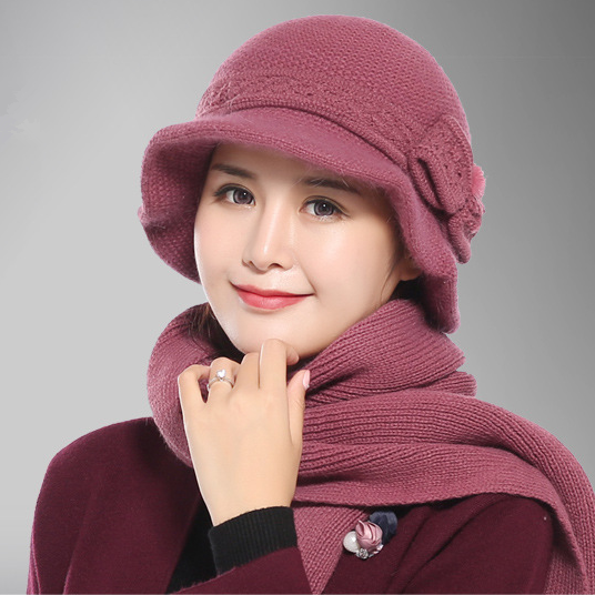 📚 老人帽子女兔毛针织帽毛线帽加厚保暖妈妈帽冬季中老年帽护耳朵帽