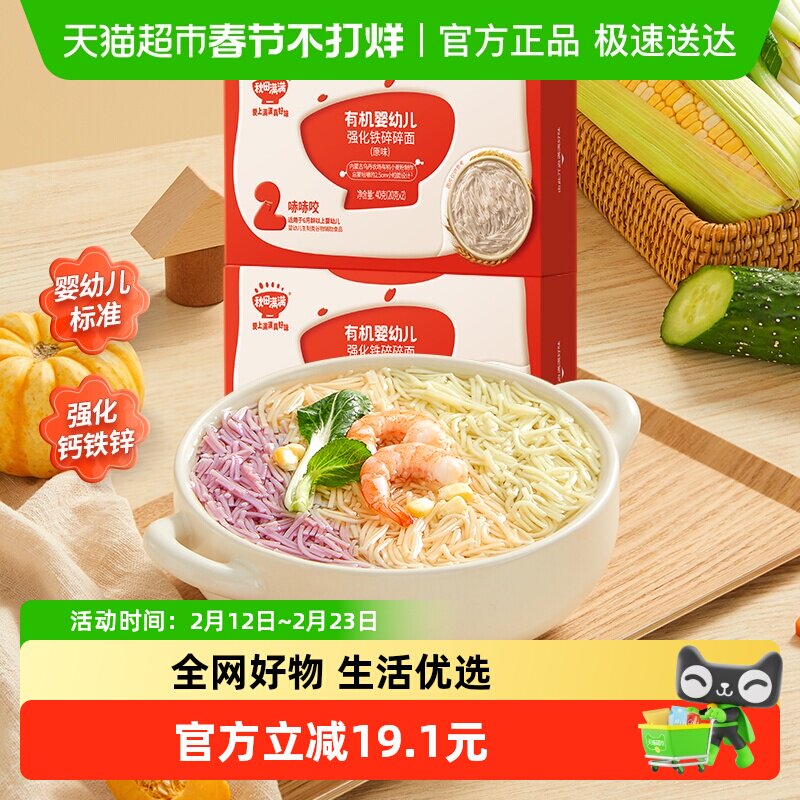 📚 秋田满满有机婴幼儿原味碎碎面宝宝儿童面条辅食无添加40g*2盒
