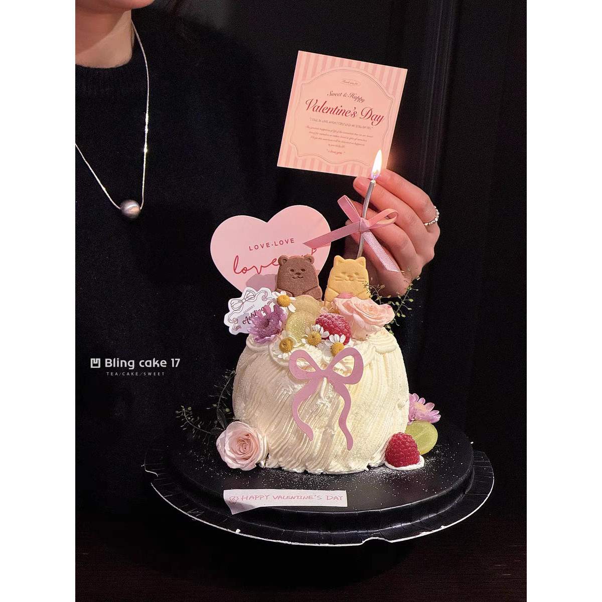 📚 网红520情人节蝴蝶结可爱熊兔饼干装扮插排告白蛋糕装饰爱心卡片