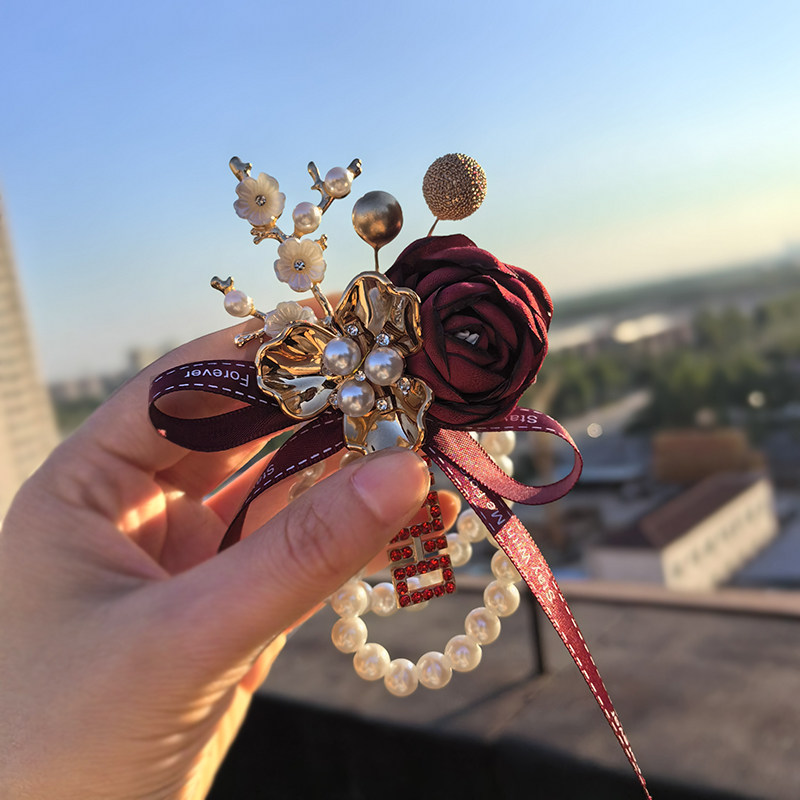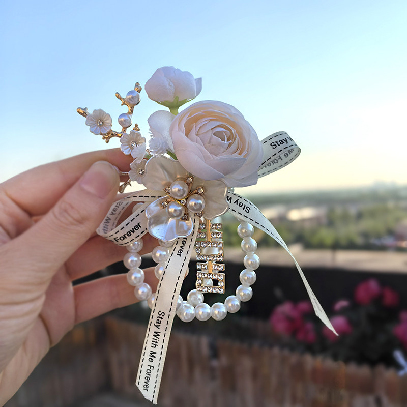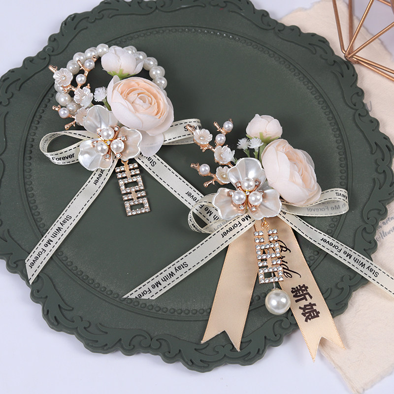 📚 中式奶油风伴娘手腕花超仙婚礼新娘手花姐妹团伴郎胸花演出手环