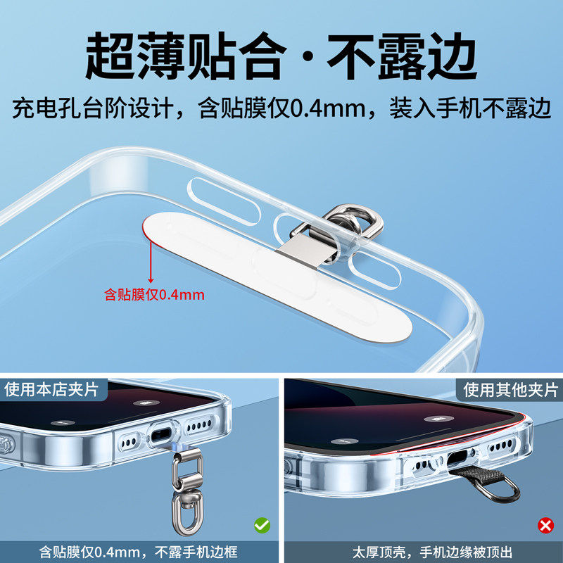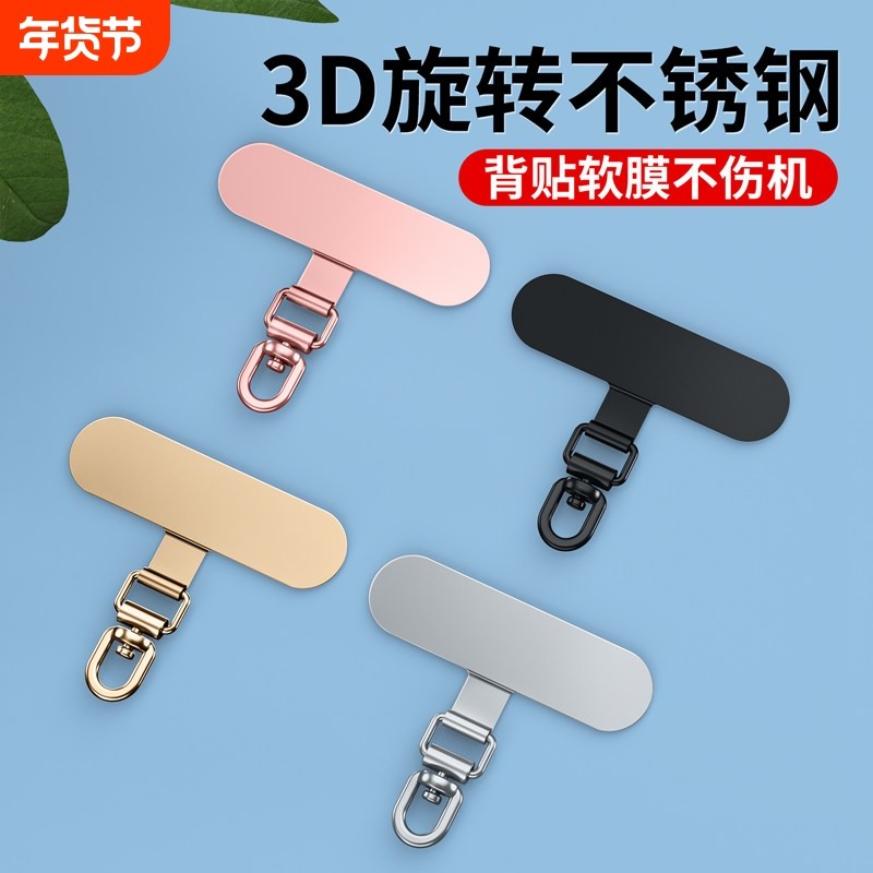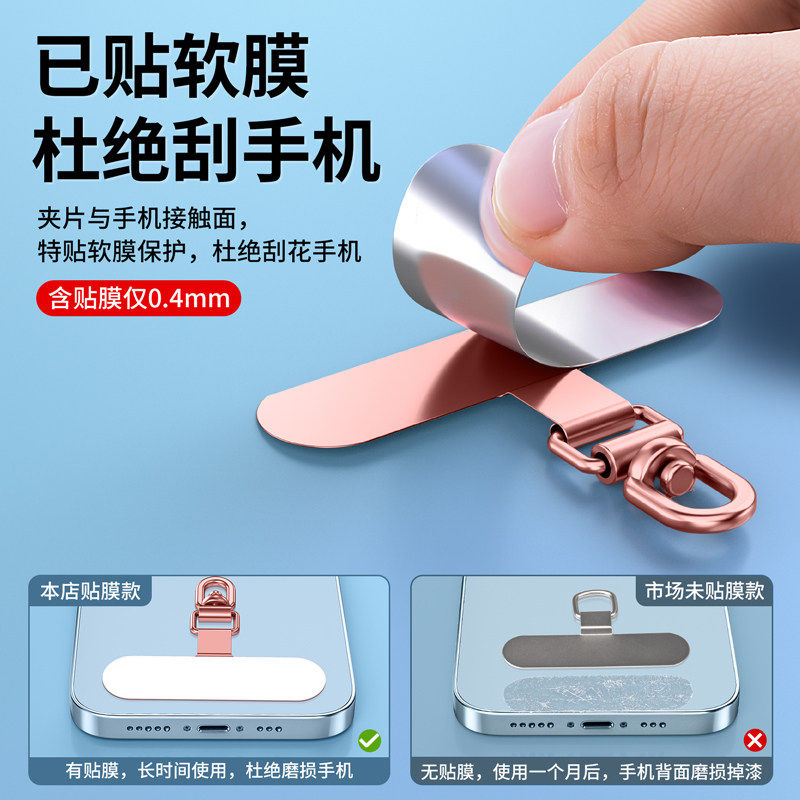 📚 手机挂绳夹片金属垫片不锈钢可旋转超薄卡垫电话壳斜挎链挂脖手腕固定贴片挂饰结实绳挂片卡片挂件防盗连接片