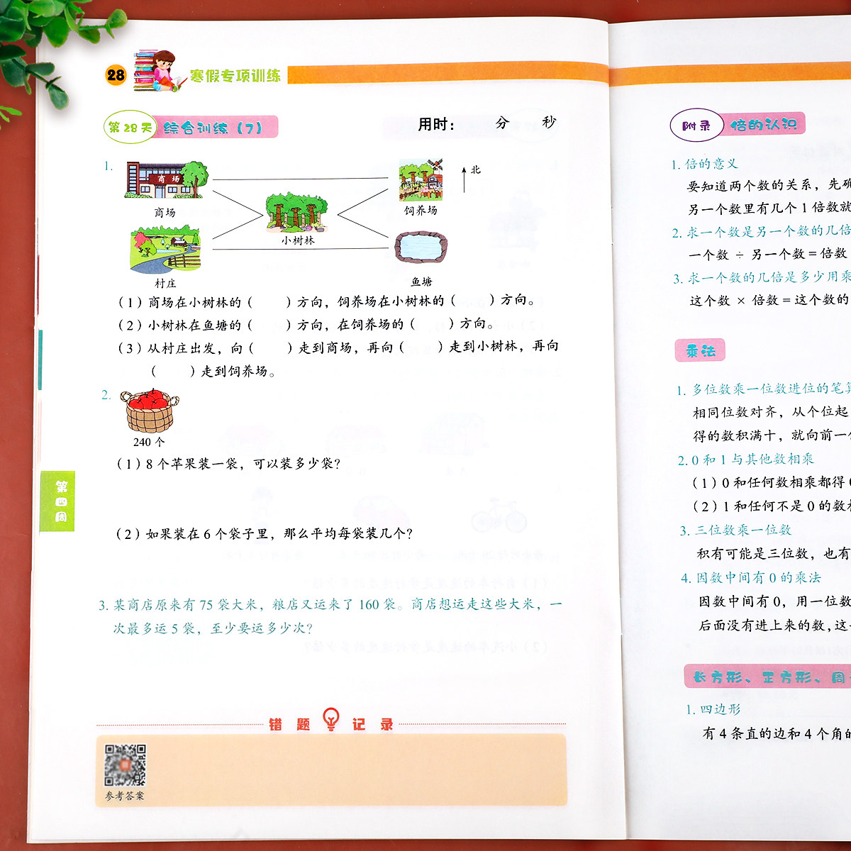 📚 三年级寒假应用题专项强化训练上册下册衔接 数学思维练习题举一反三应用题天天练小学3年级暑假专项练习册通用版人教快乐假期RJ