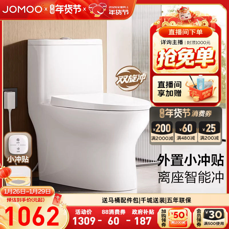 📚 九牧卫浴双旋暴风冲刷离座智能冲加热盖板家用马桶陶瓷防臭坐便器