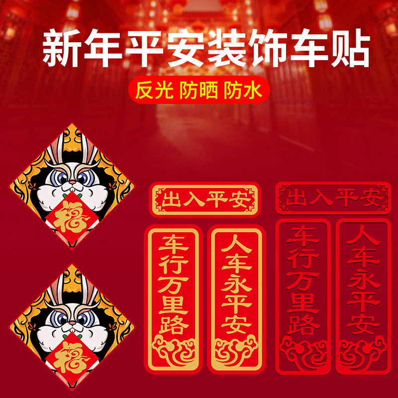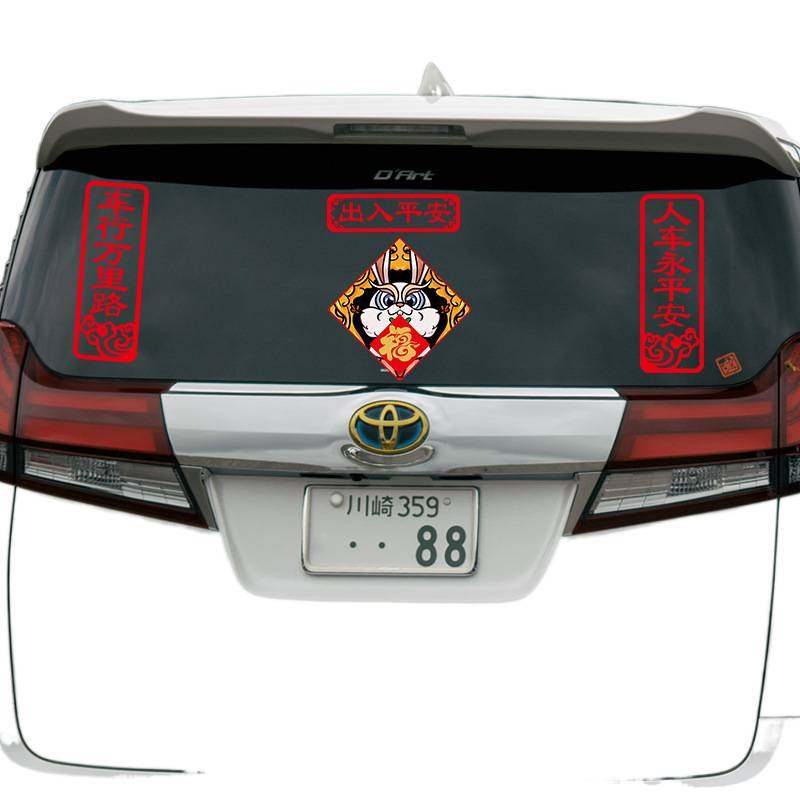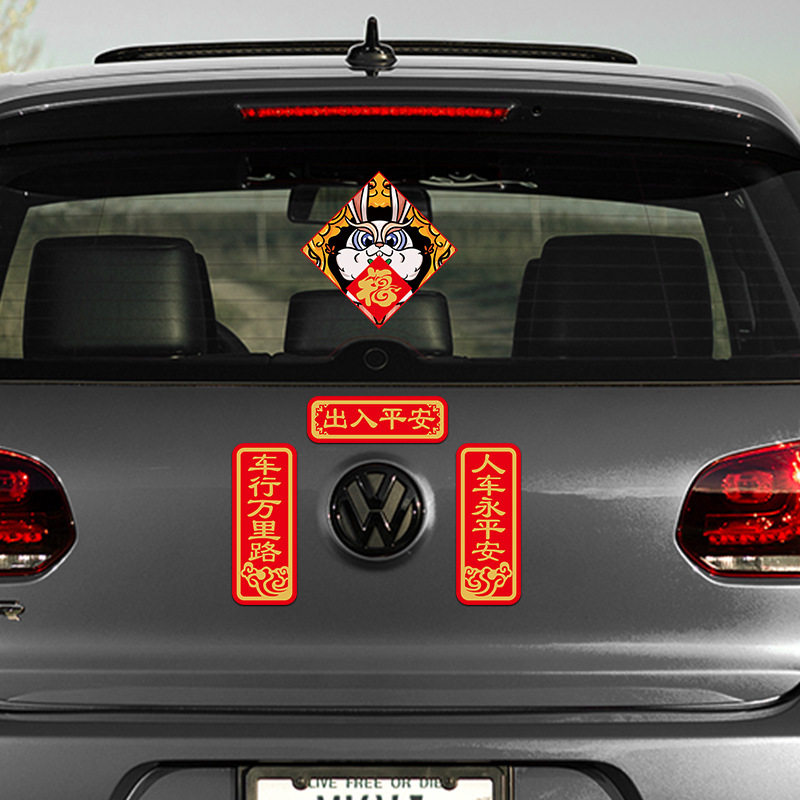📚 新年磁吸对联车贴创意车用小春联福字装饰贴画小兔子汽车贴纸