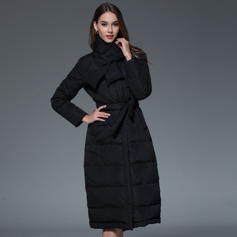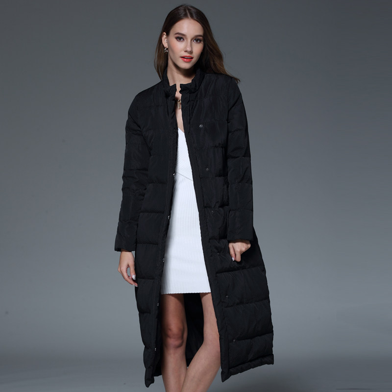 📚 【鹅绒服加长加厚】款冬季欧美纯色长款过膝保暖羽绒服女反季清仓