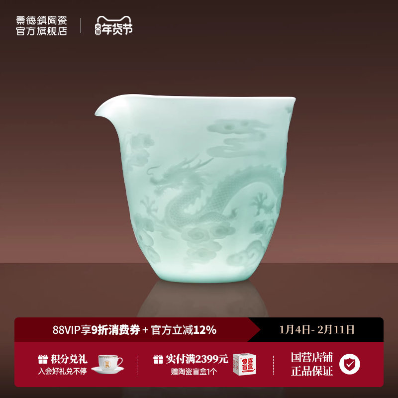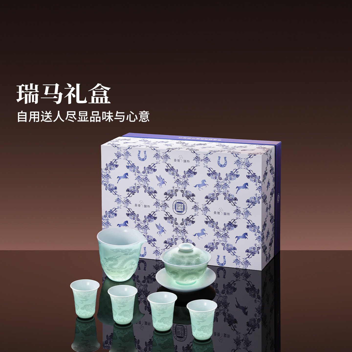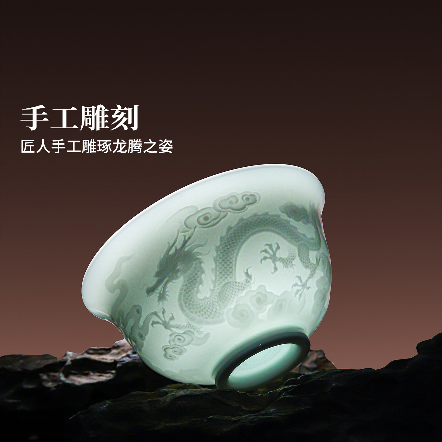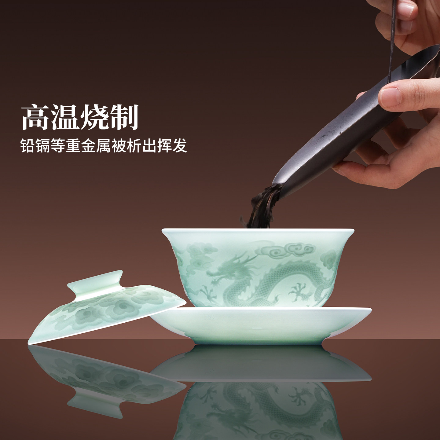 📚 景德镇官方陶瓷影青雕刻龙纹公道杯盖碗套装茶杯新款家用茶具礼盒