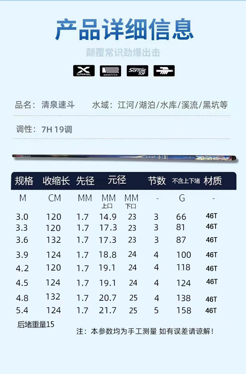 📚 清泉速斗x7黑坑鱼竿7h19调黑坑专用罗非竿鲤鱼竿碳素7h黑坑鱼竿
