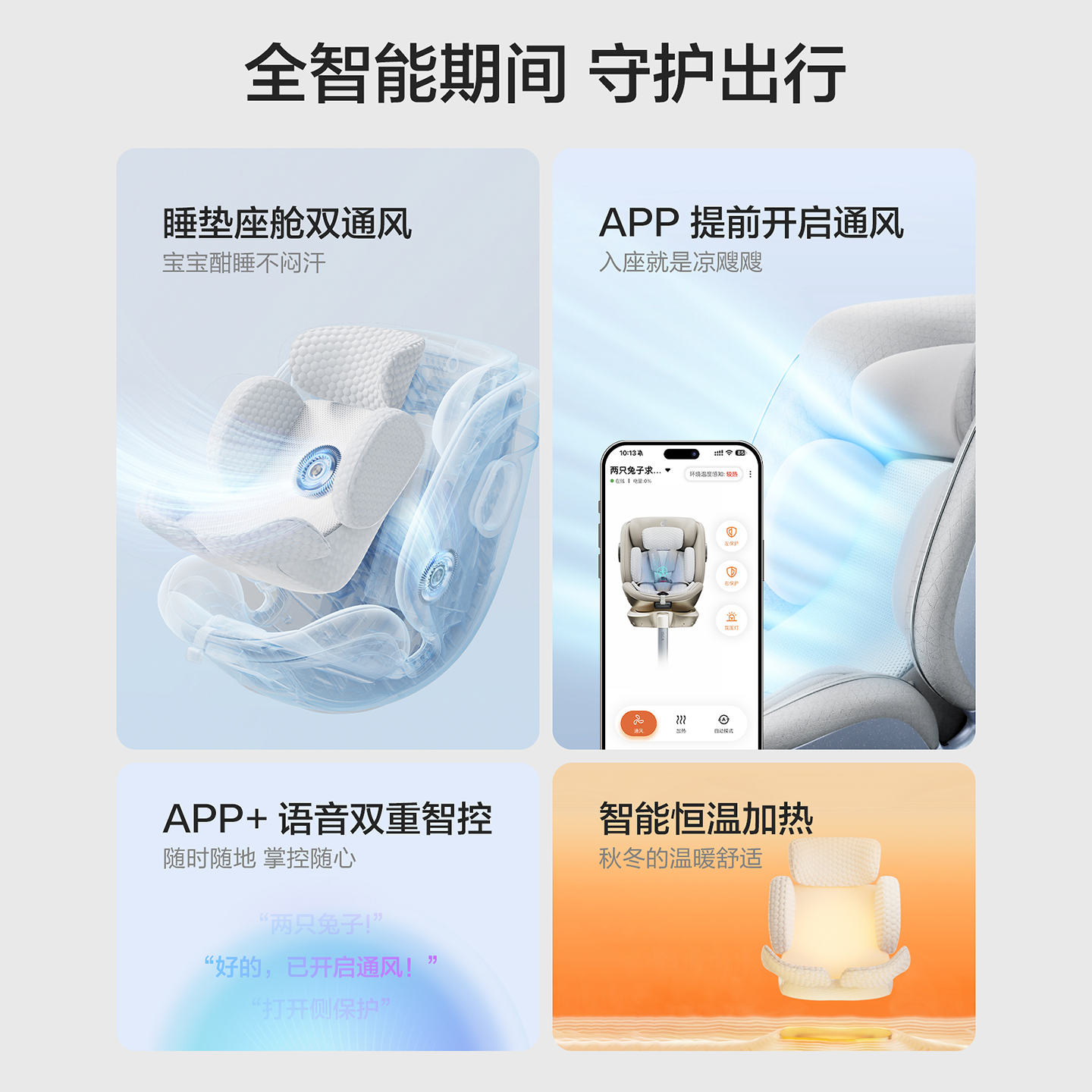 📚 两只兔子安全座椅求知2pro儿童提篮婴儿太空舱智能语音通风车载