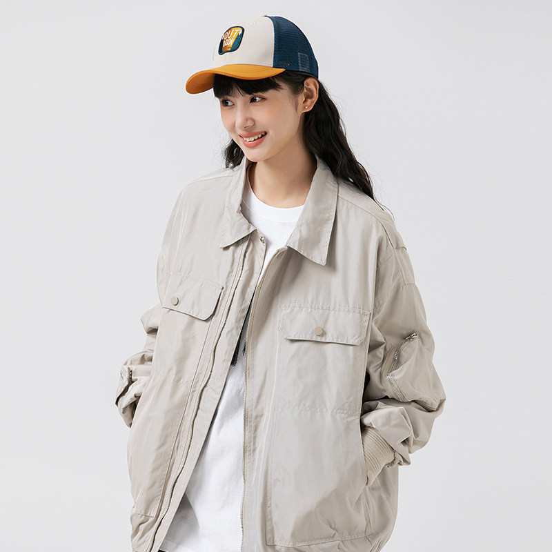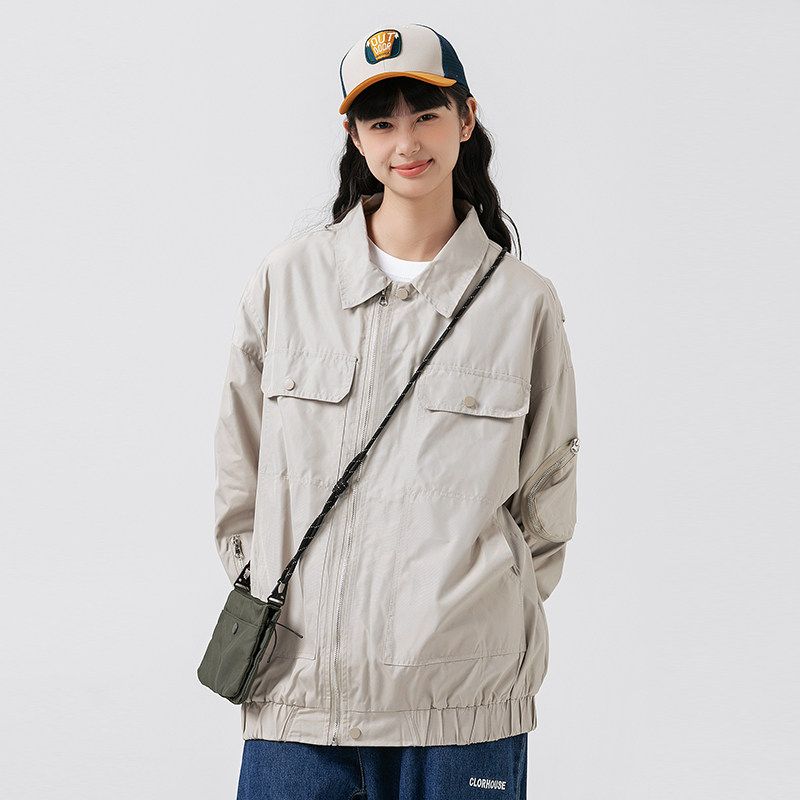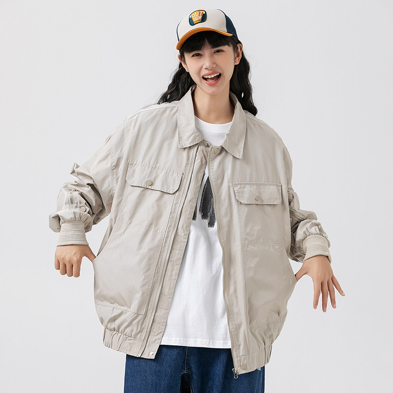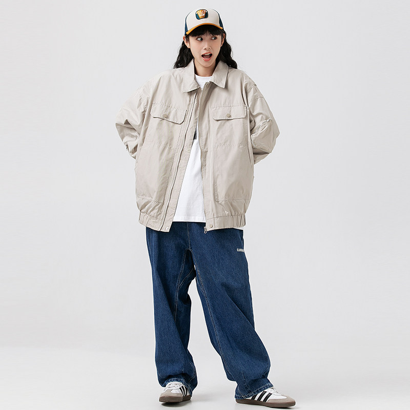 📚 DL brand秋季日系情侣潮牌纯色翻领宽松休闲工装外套夹克男女