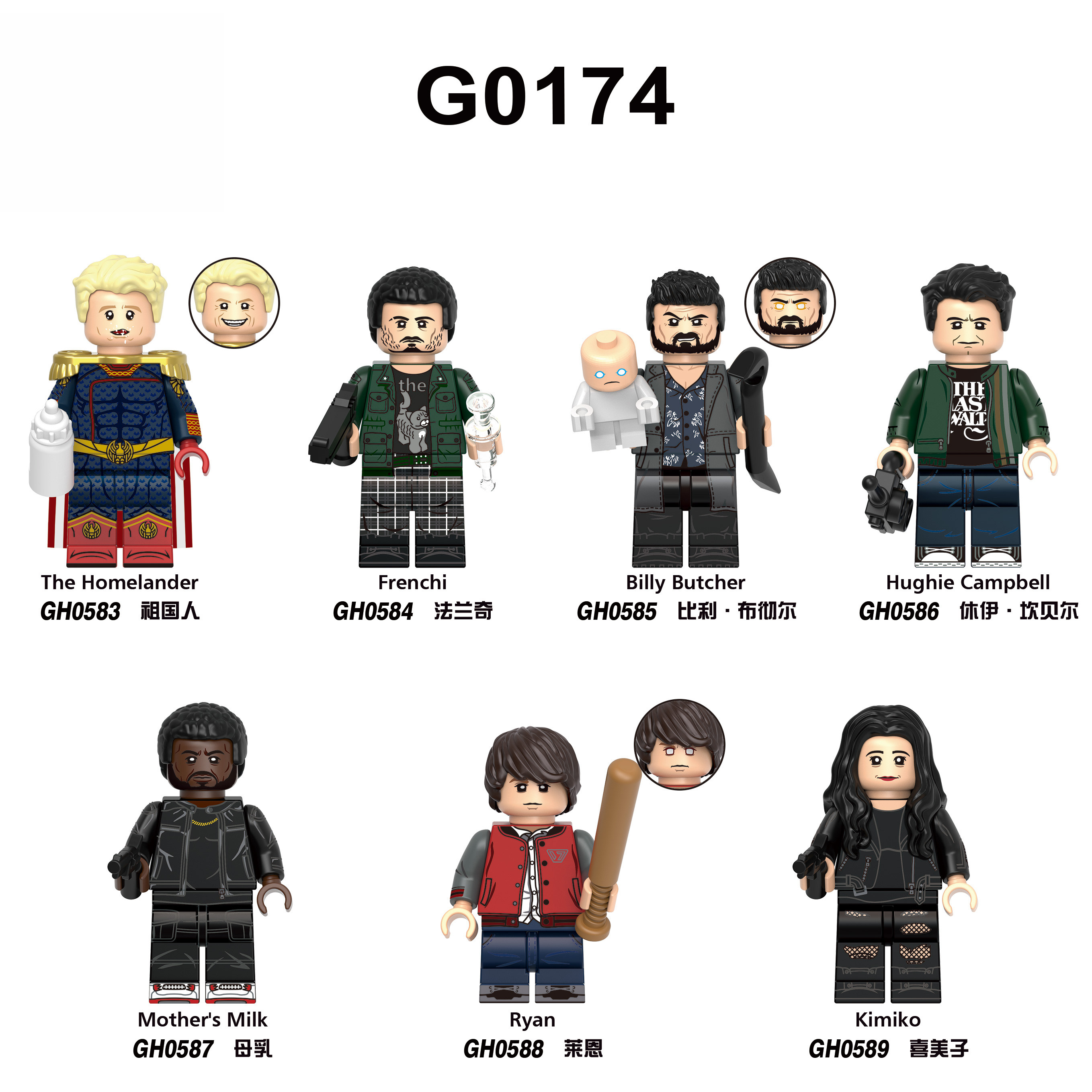 📚 黑袍纠察队祖国人屠夫比利莱恩法兰奇拼装积木人仔儿童玩具G0174