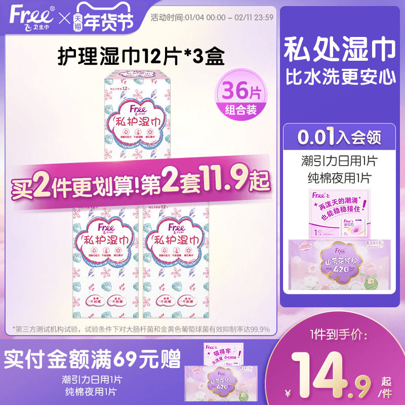 📚 Free卫生湿巾女私处清洁抑菌消毒湿纸巾36片装单独包装男女通用