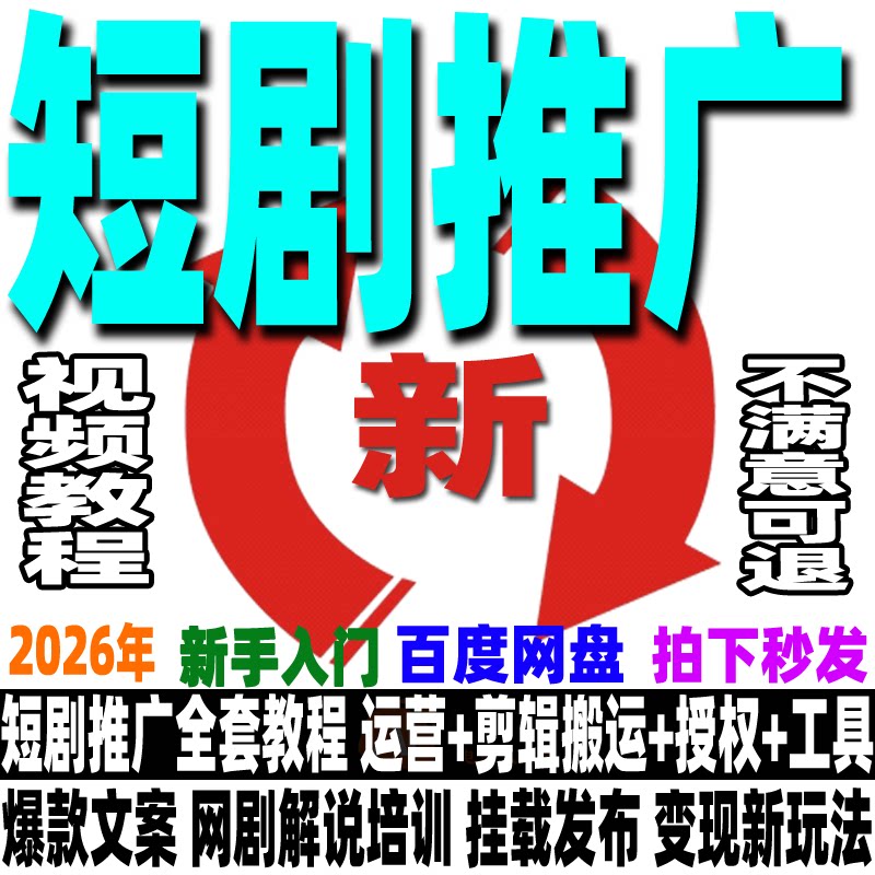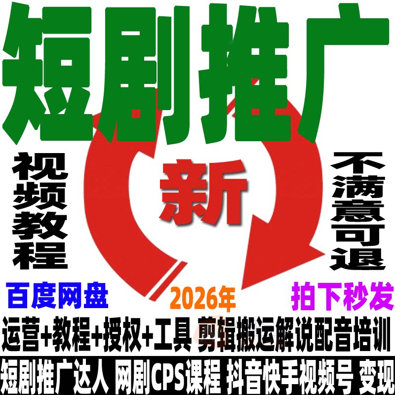 📚 2026短剧推广教程 短剧运营课程网剧授权CPS剪辑搬运解说培训视频