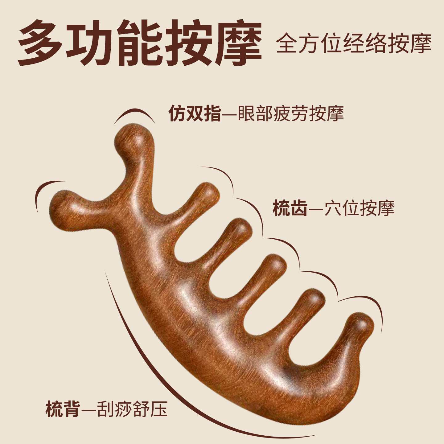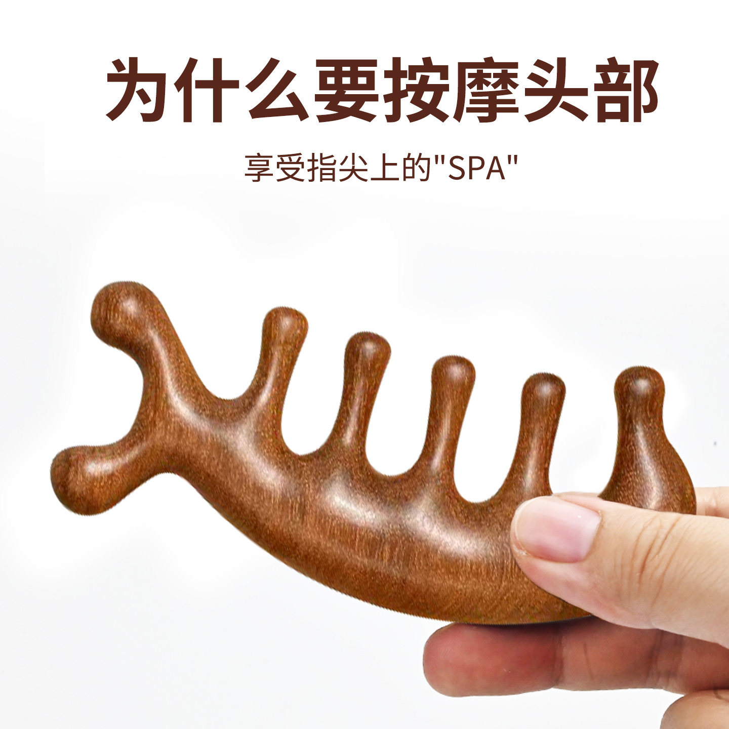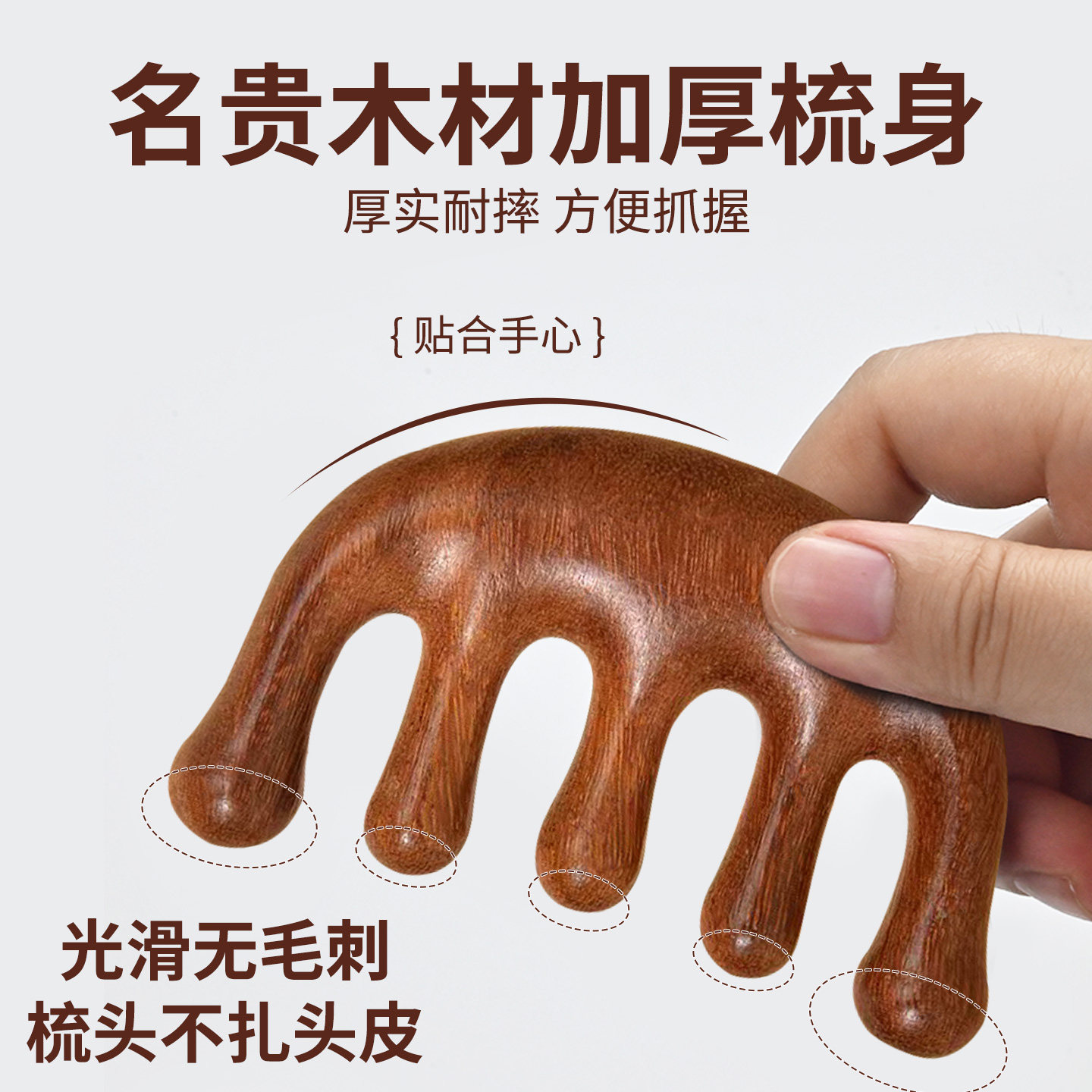 📚 按摩梳檀木头部经络梳子头疗按摩男女刮痧头皮经络防宽齿刷五指刷