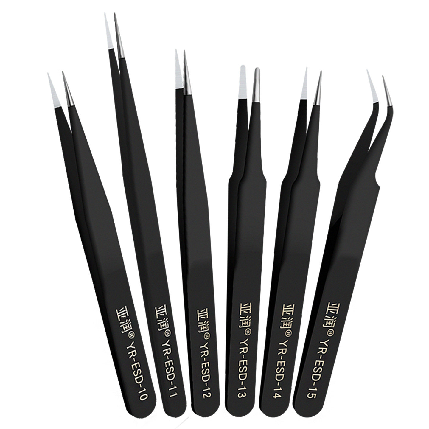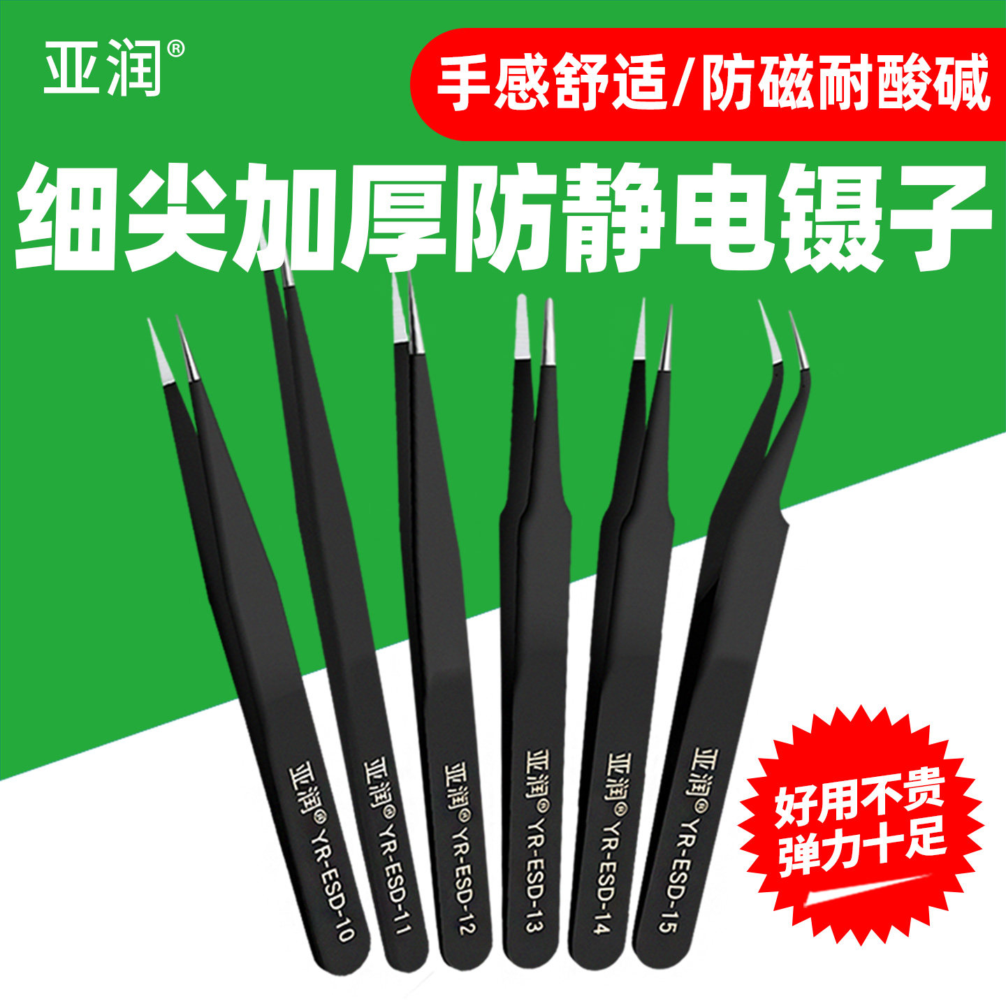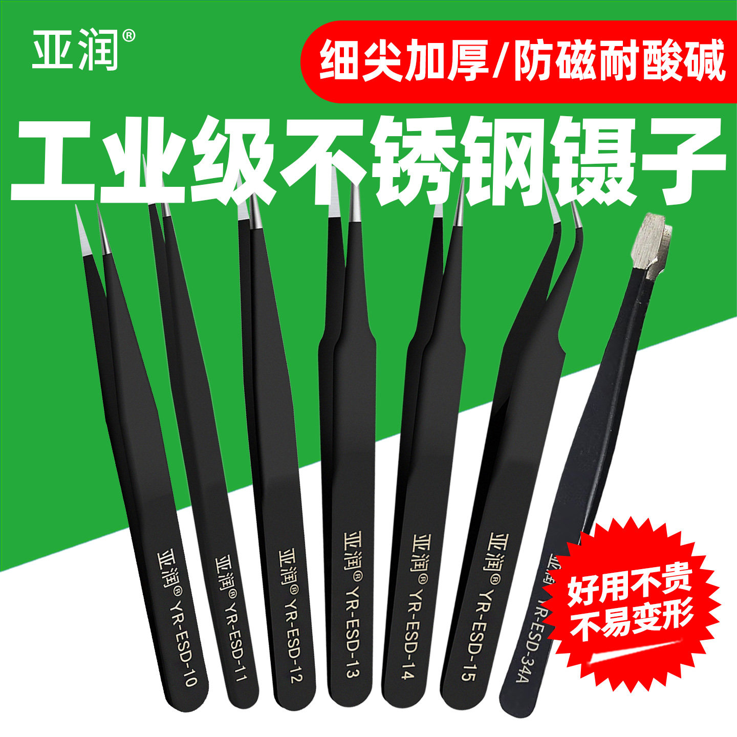 📚 亚润镊子不锈钢工具维修尖头弯头手工小列子防静电捏聂子夹高精密