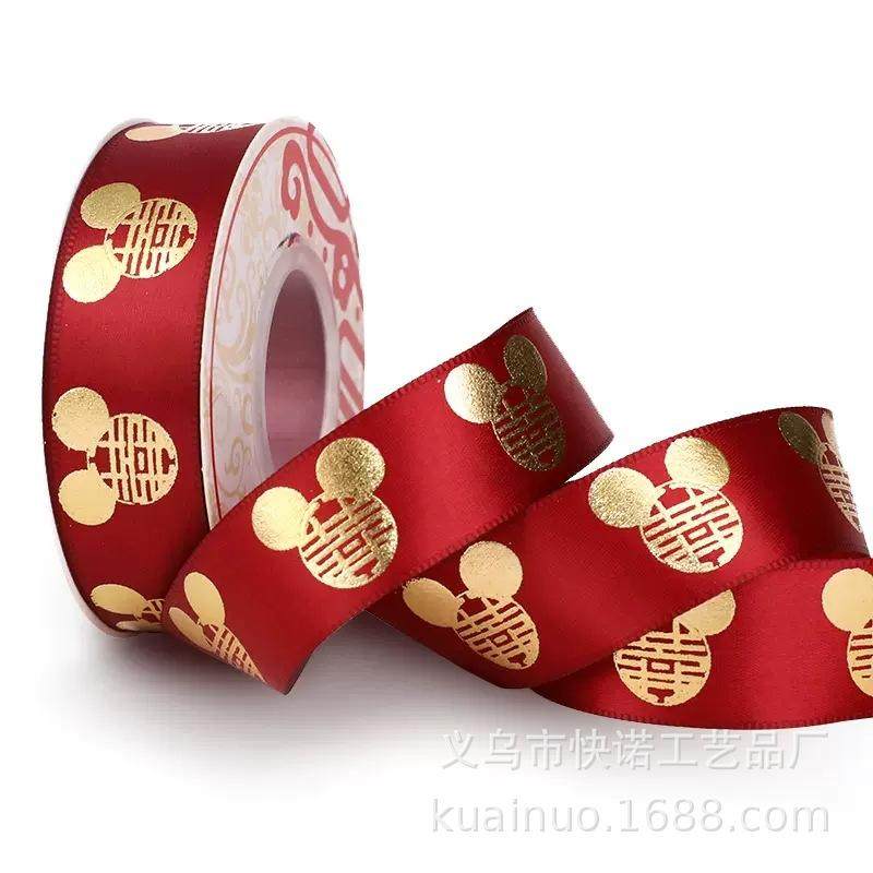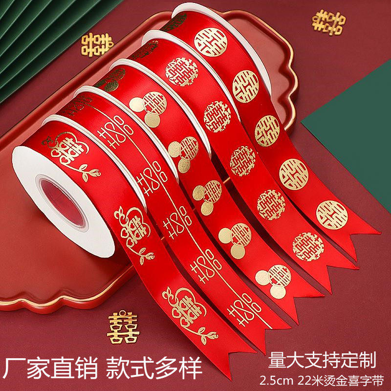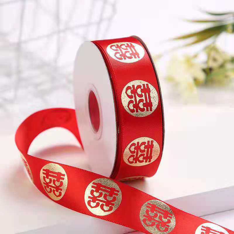 📚 结婚用的红丝带缎带喜字彩条喜庆婚车装饰婚礼被子捆绑带双囍布条