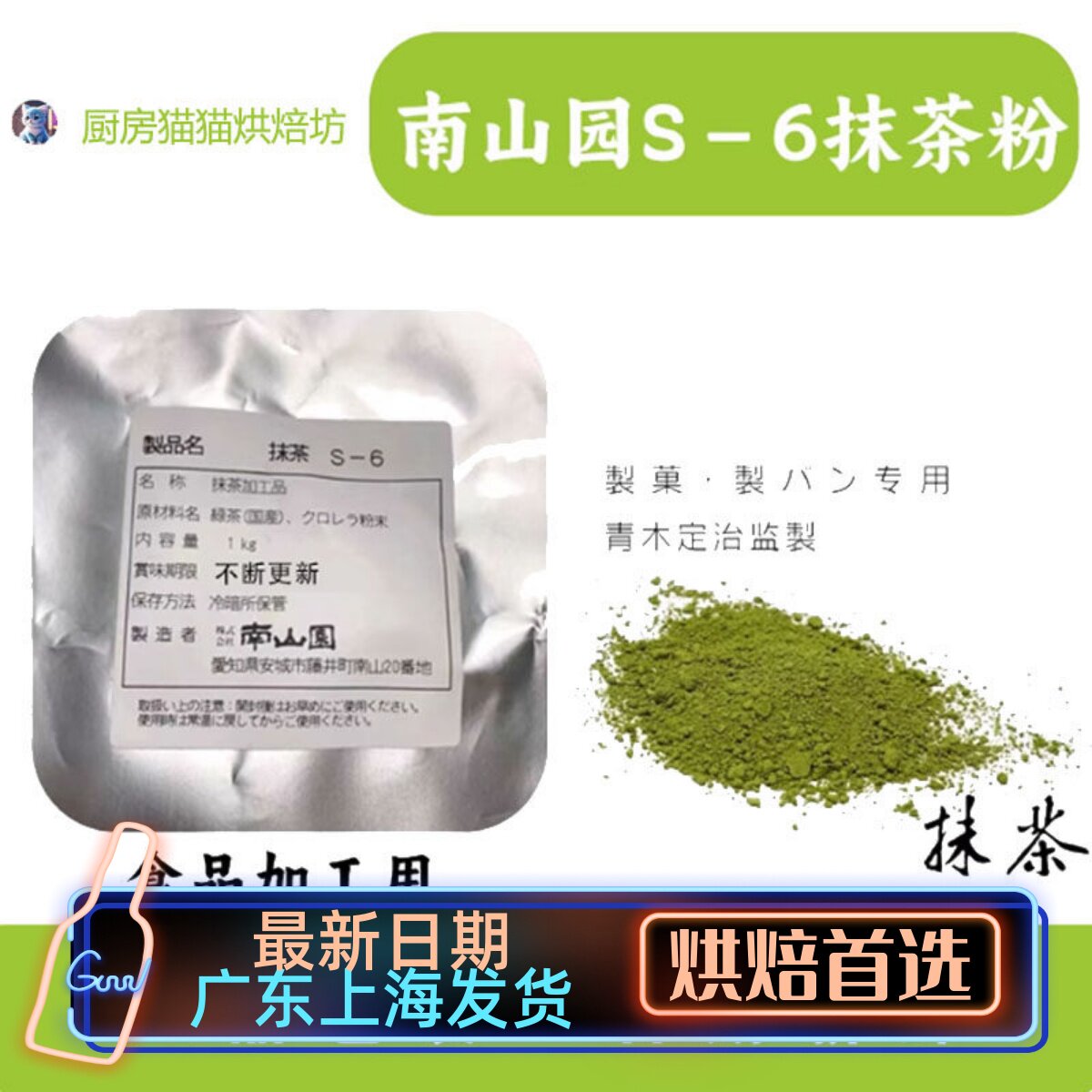 📚 南山园抹茶粉S-6青木定治西尾抹茶粉耐高温不变色不褪色烘焙