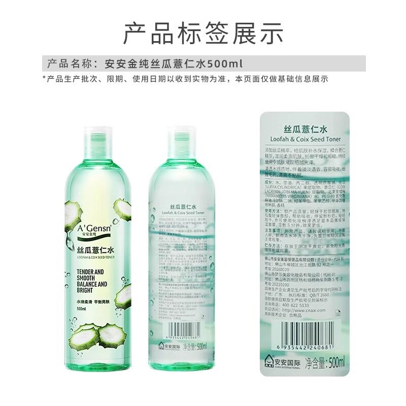 📚 安安金纯丝瓜薏仁水原液爽肤水女保湿喷雾湿敷化妆水薏仁水