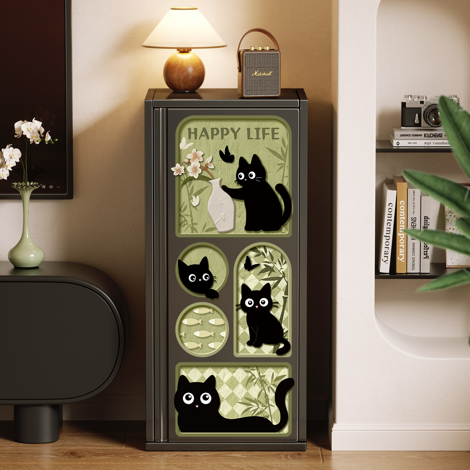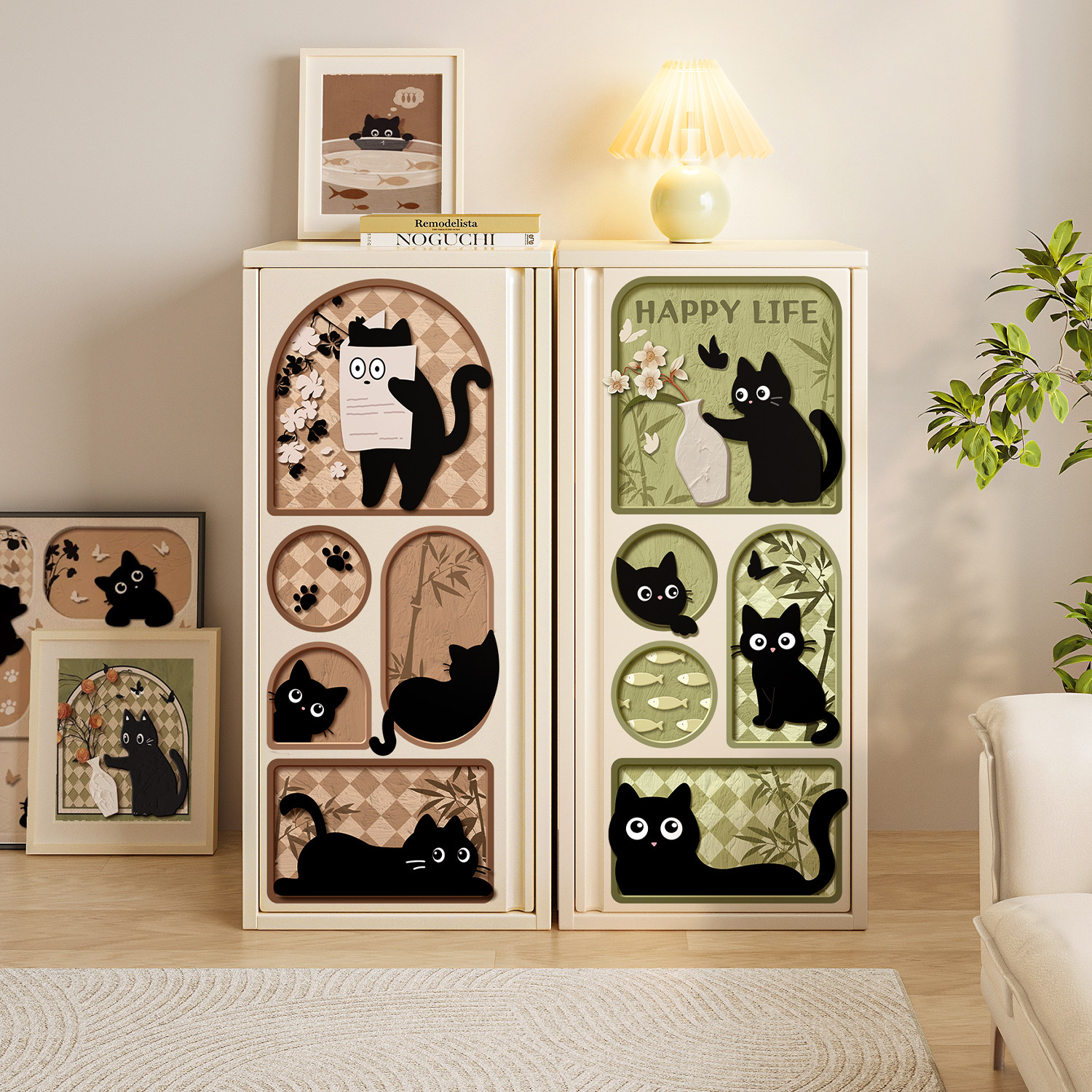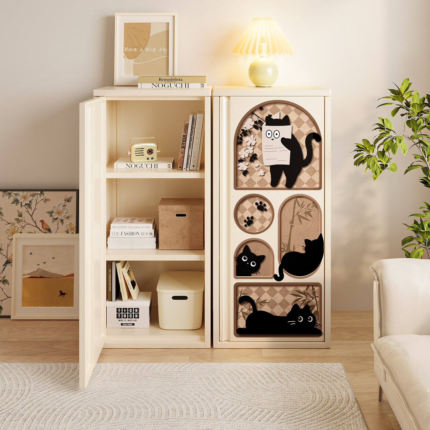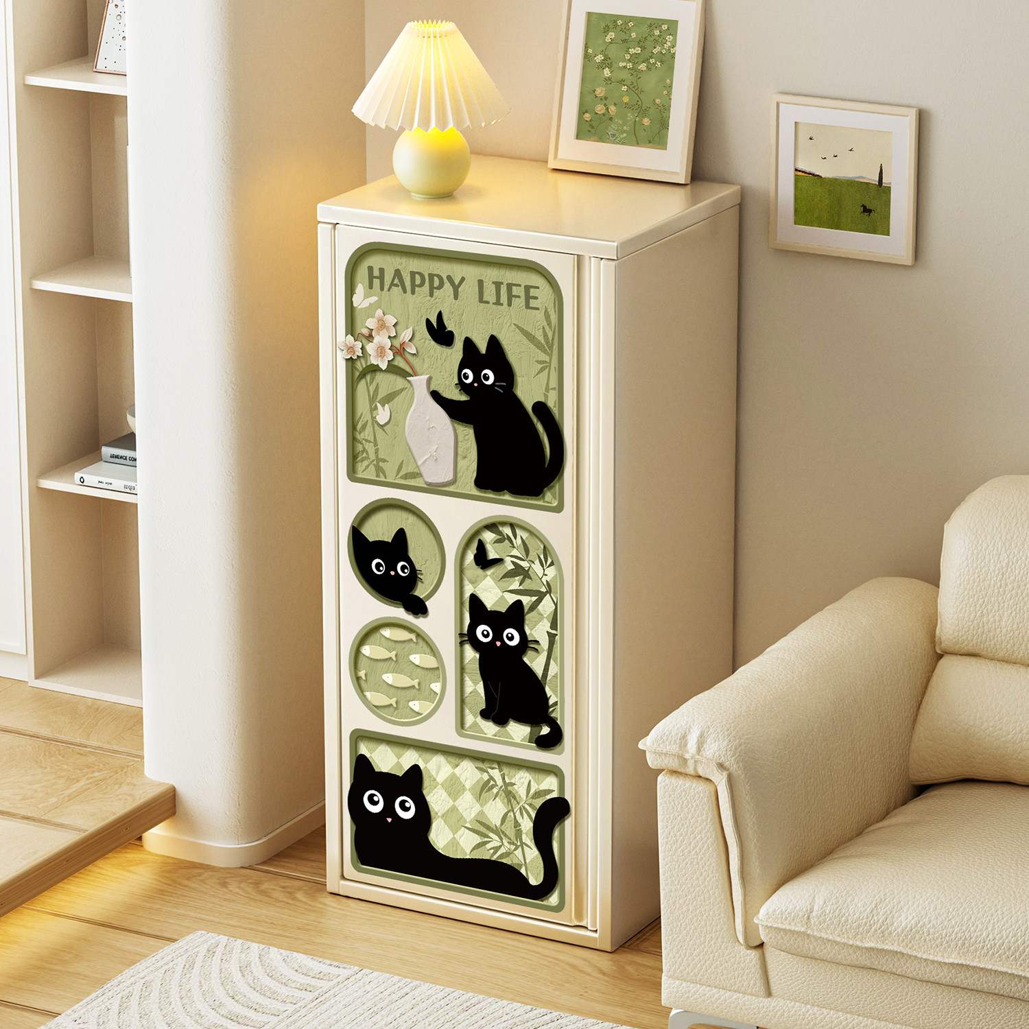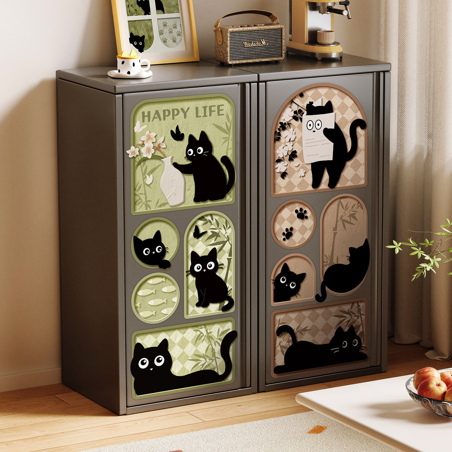 📚 中古风猫咪斗柜客厅靠墙置物柜沙发电视柜旁小边柜钢制铁皮收纳柜