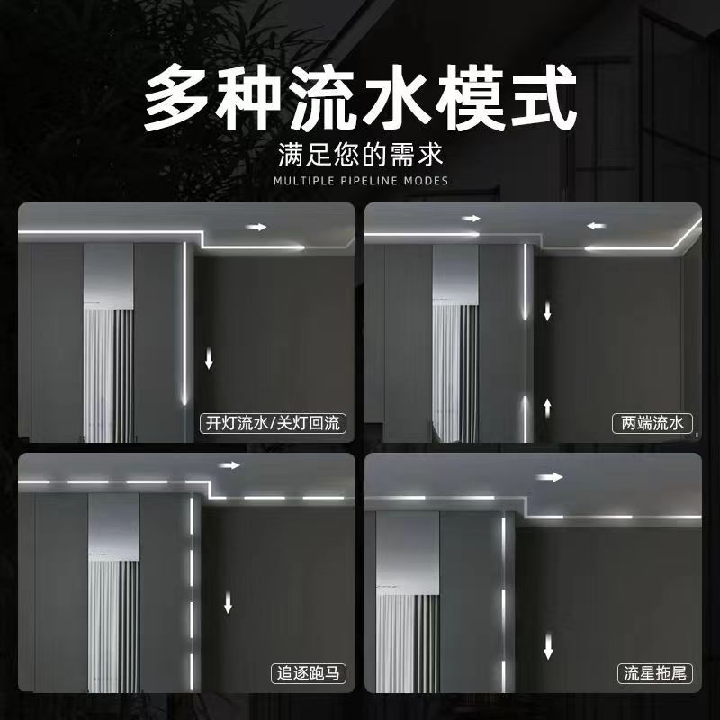 📚 流水灯带三色变光网红追光嵌入式线性灯回流家用双色温led灯带24V