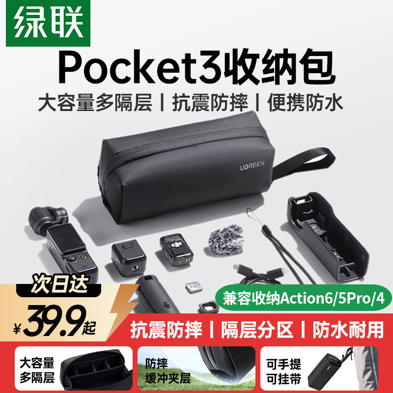 📚 绿联适用大疆Pocket3收纳包Action6/Action5Pro/4/Nano运动相机包便携大容量防水防摔保护套数据线手提配件包