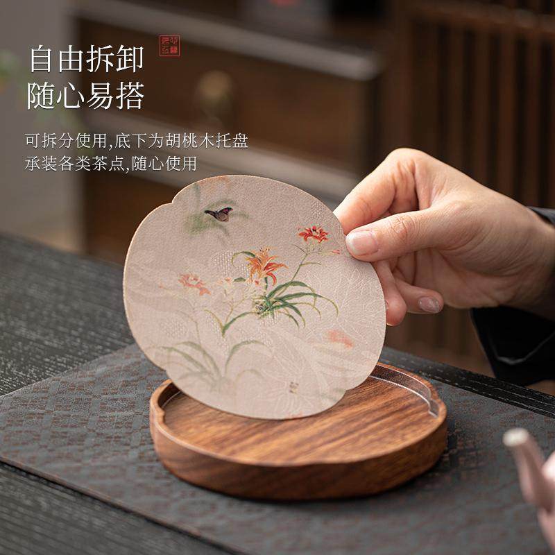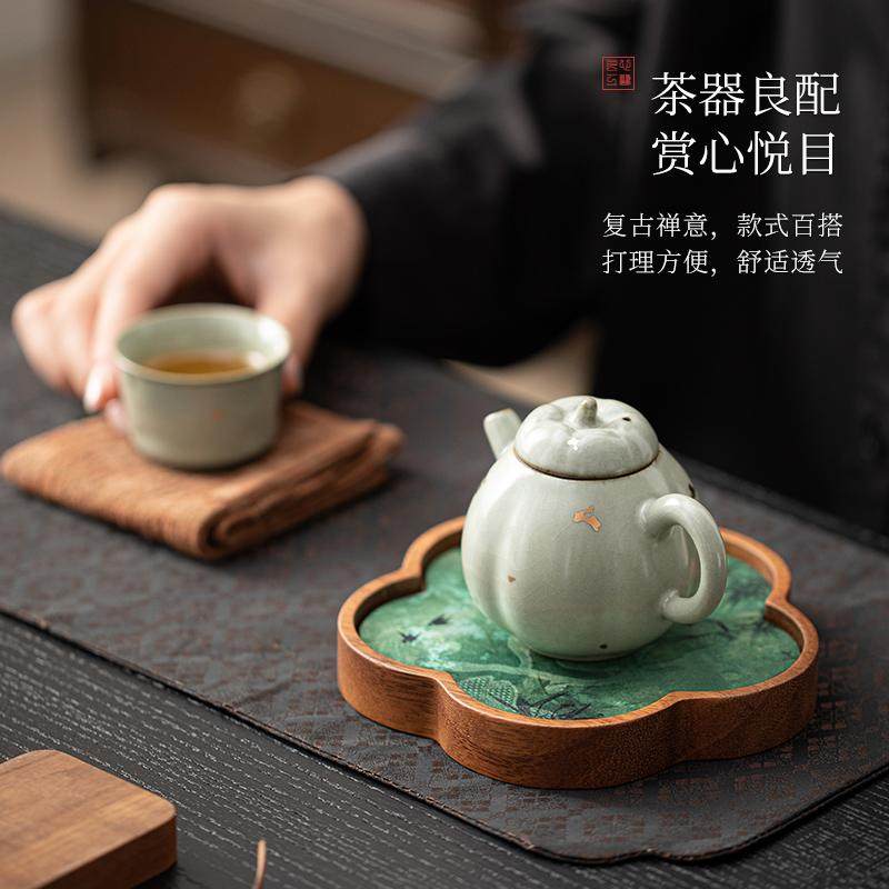 📚 觅己胡桃木壶承干泡台小型实木茶盘茶壶盖碗底座精致防水茶席托盘