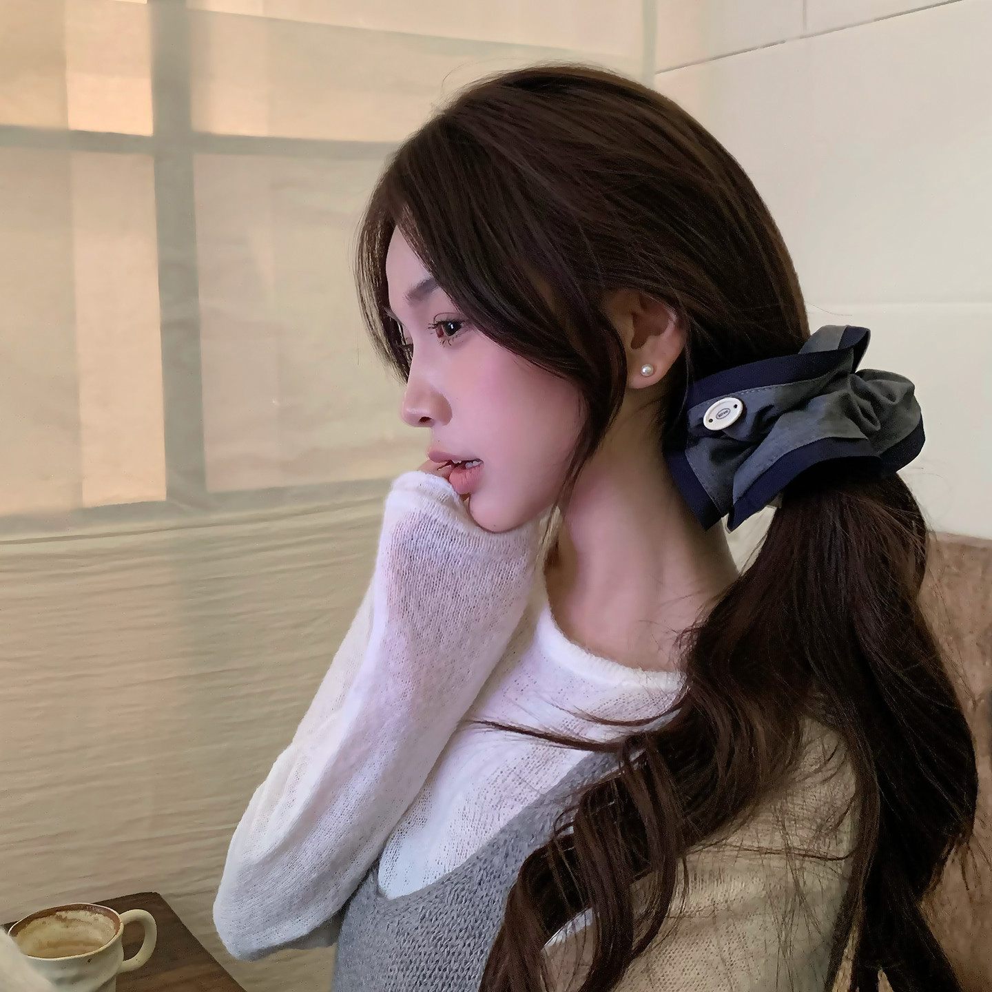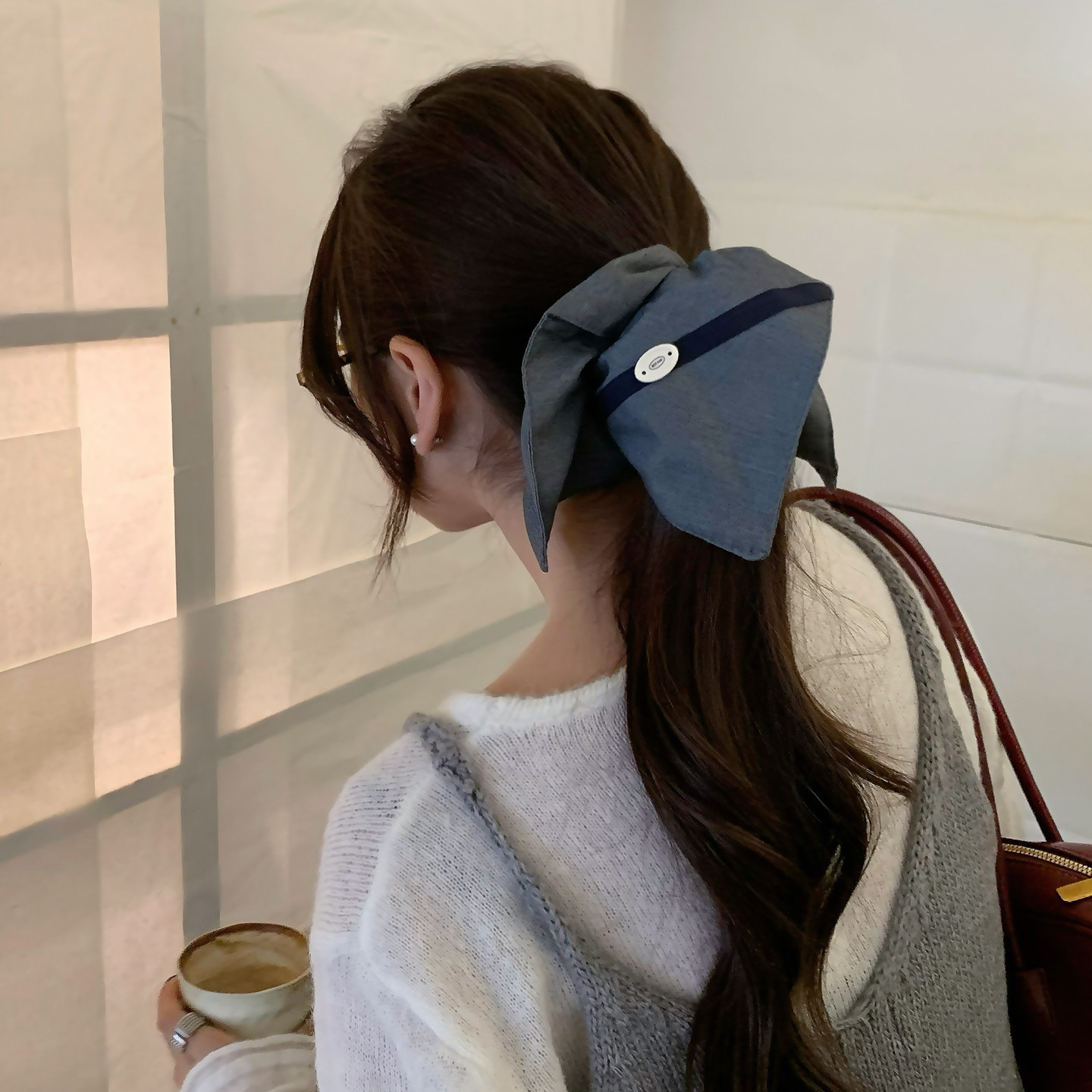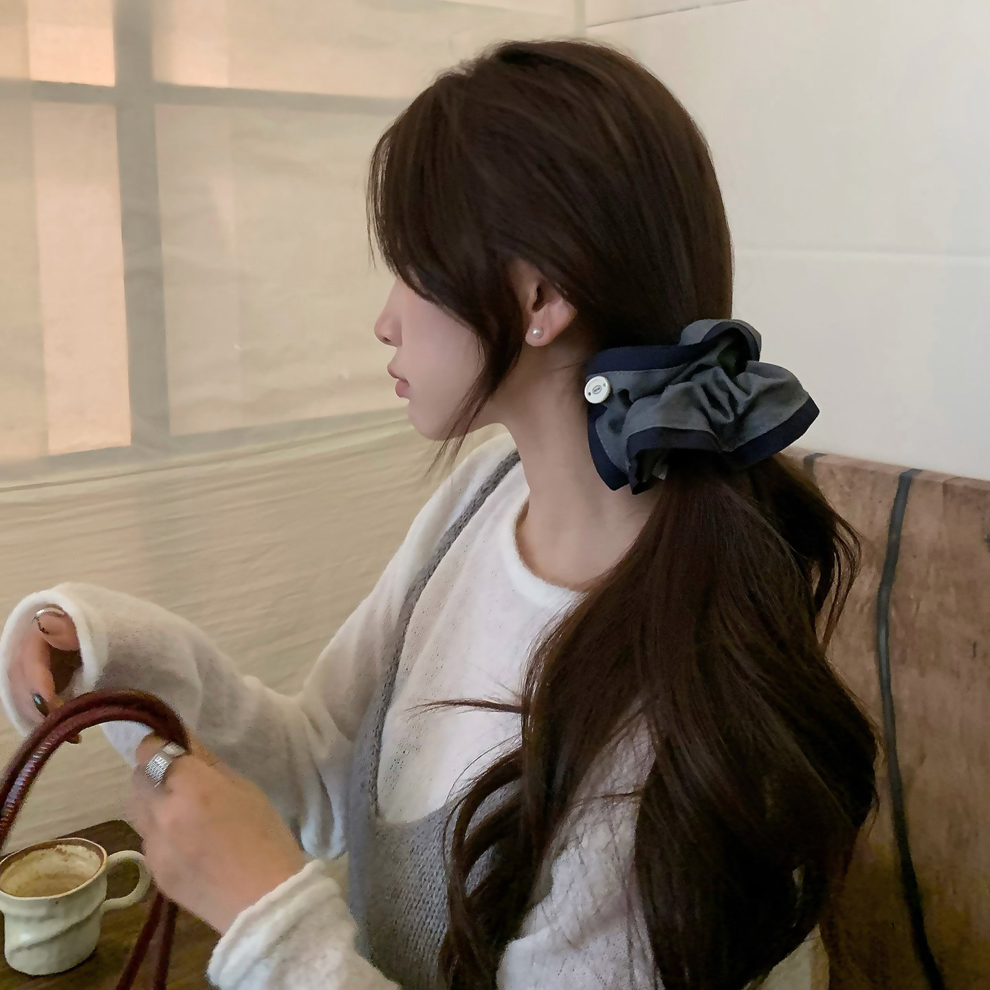 📚 韩系灰蓝撞色西装料发圈复古百搭大肠圈方巾发绳扎马尾发饰女头饰