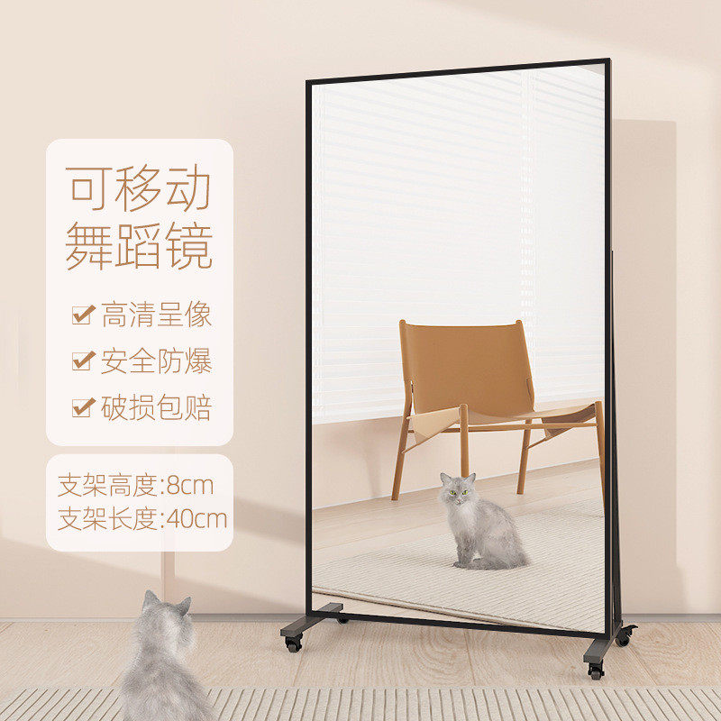 📚 健身移动舞蹈镜万向轮落地镜家用镜子全身穿衣镜瑜伽可练功房镜子