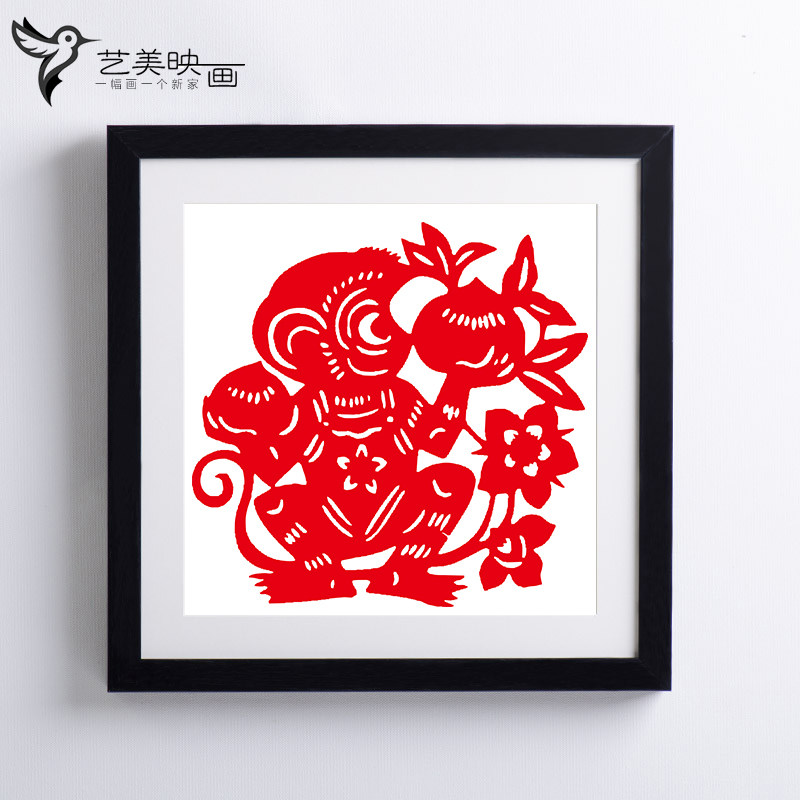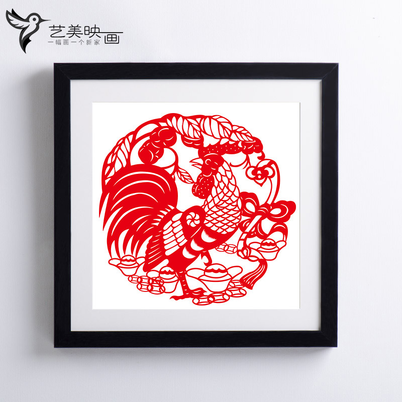 📚 【十二生肖】中国红防剪纸印刷画火锅店茶馆装饰画有框送友人喜庆