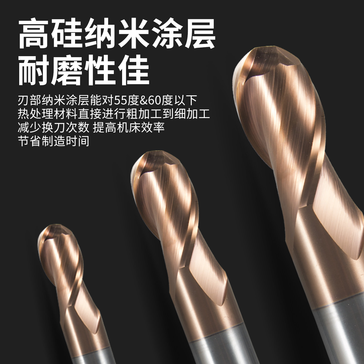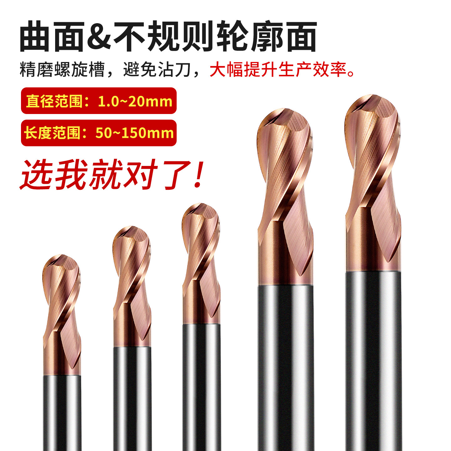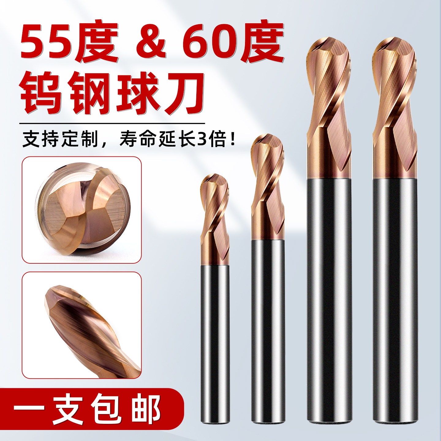 📚 60度球头2刃硬质钨钢合金55度加长铝用球头铣刀cnc数控刀具洗铝用