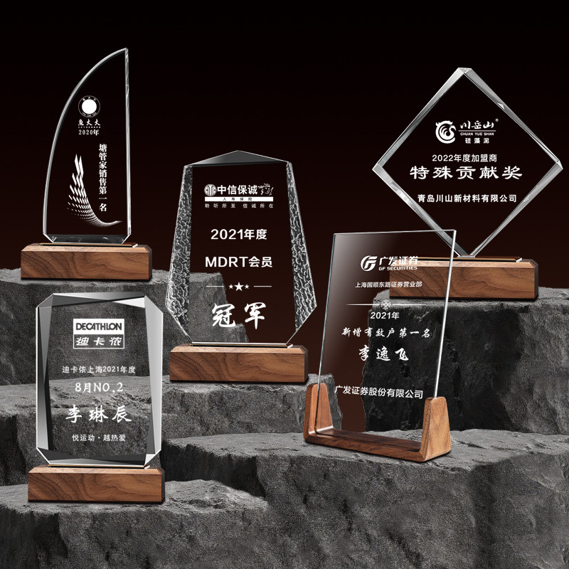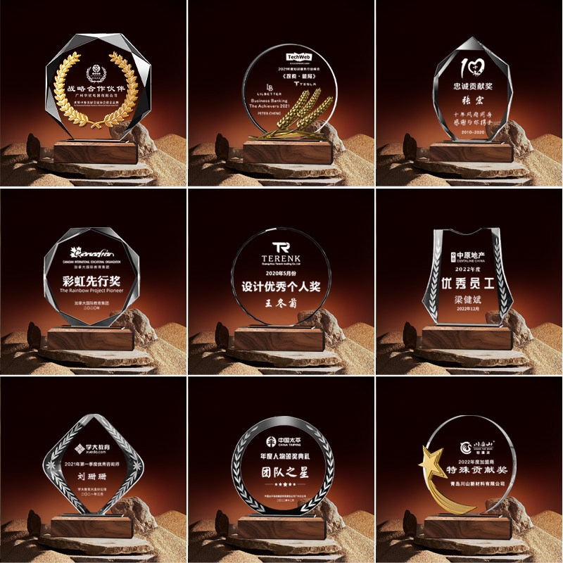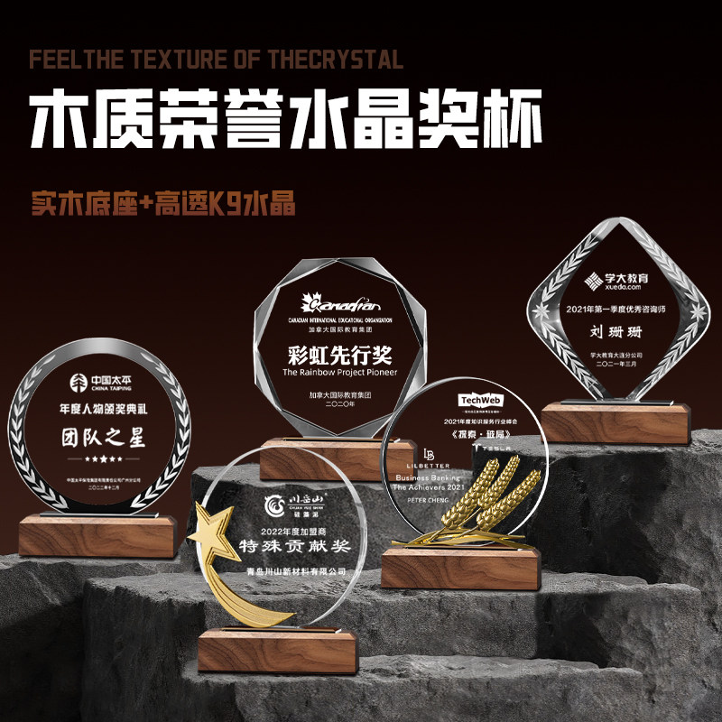 📚 创意实木水晶奖杯奖牌定制定做公司年会优秀员工团队比赛颁奖纪念