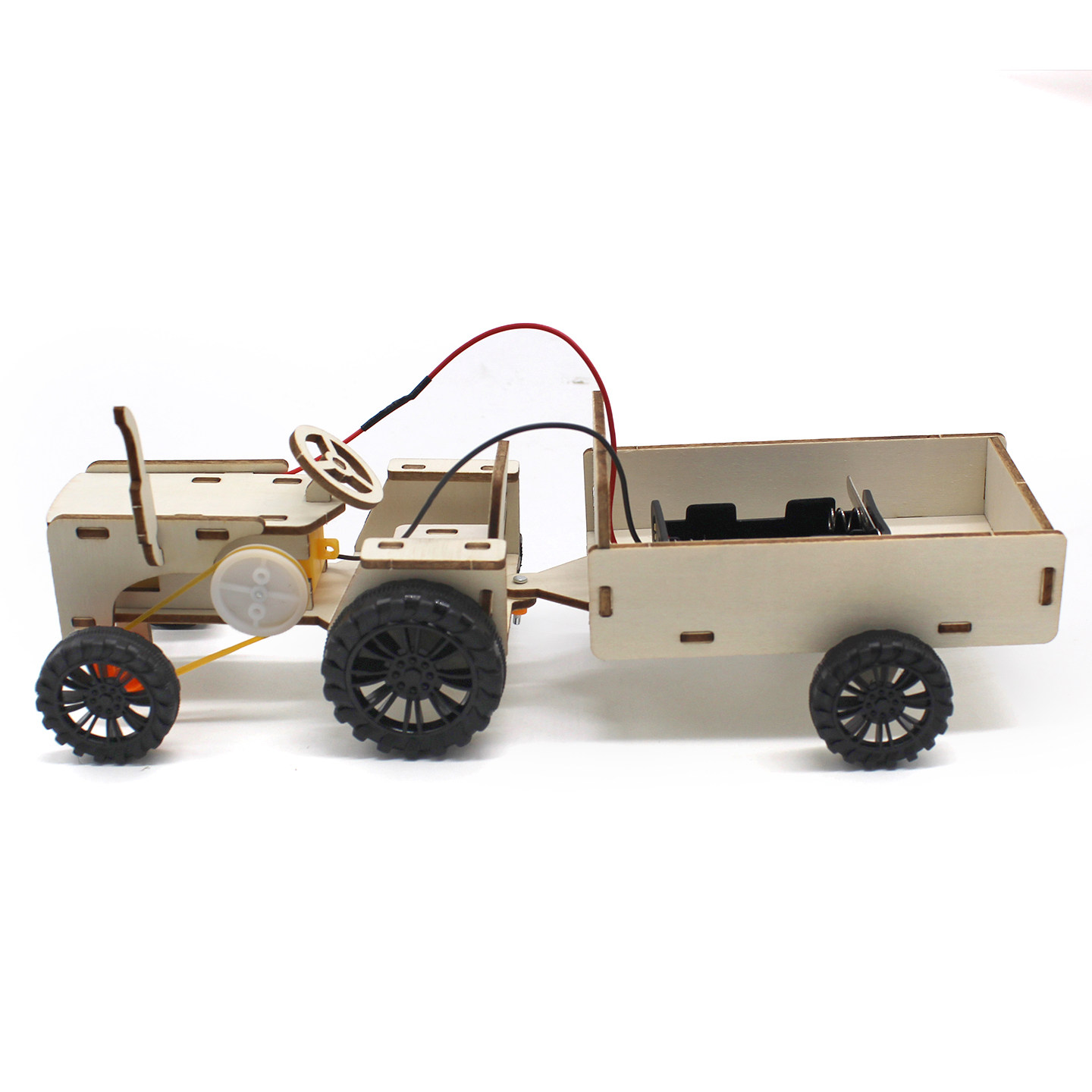 📚 带斗拖拉机1号惯性工程车拖车运输车模型学生创意手工拼装材料包