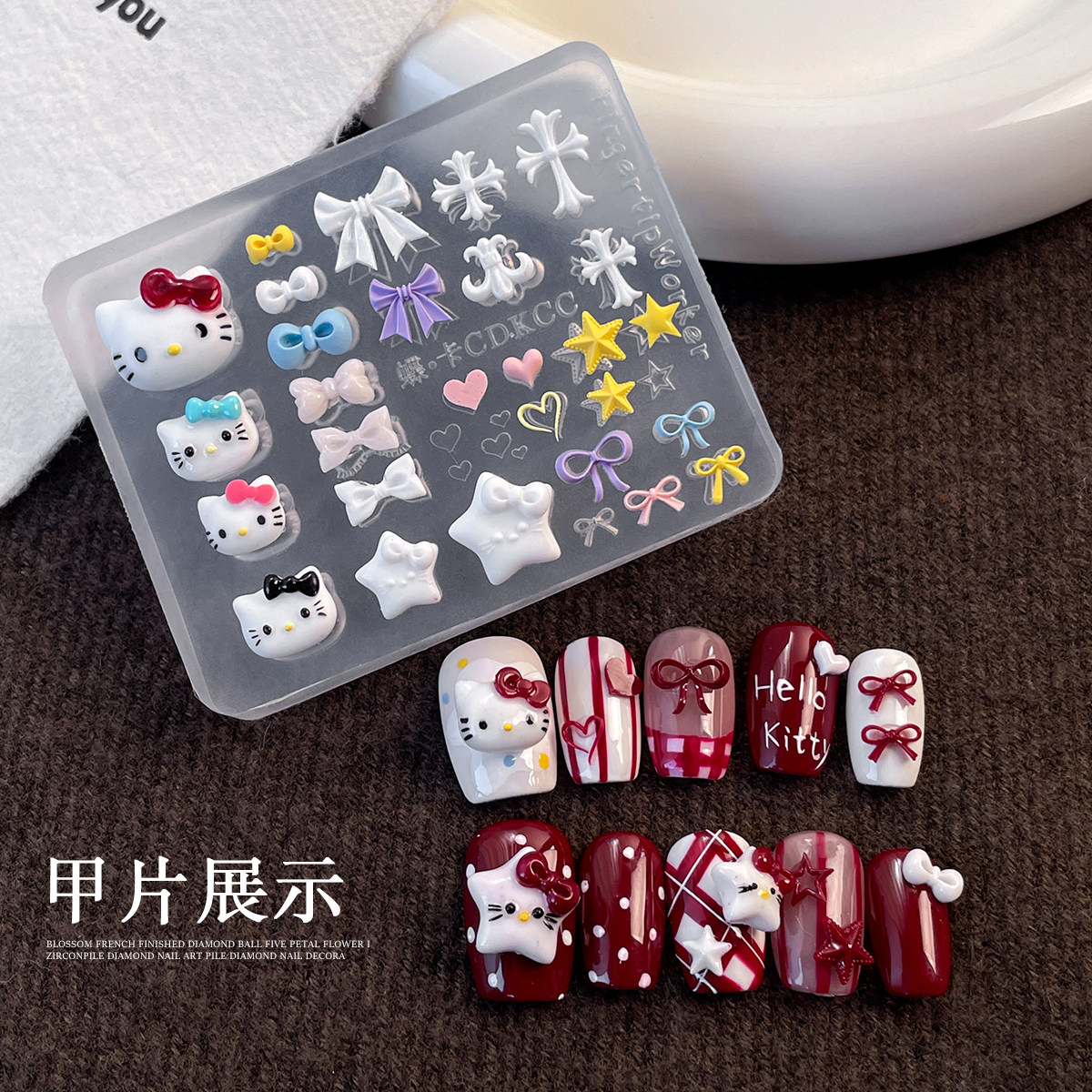 ✨外观细节:这款模具的设计简直太可爱了!KT猫的形象栩栩如生,立体硅胶材质,不仅耐用,还超级适合做美甲!还有那独特的雕花图案,让指甲瞬间变得与众不同。每次看到它,我都忍不住想入手。😍