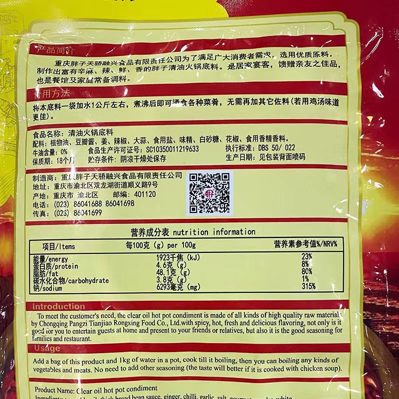 📚 重庆胖子清油火锅底料150g串串香冒菜餐饮无牛油火锅小包装