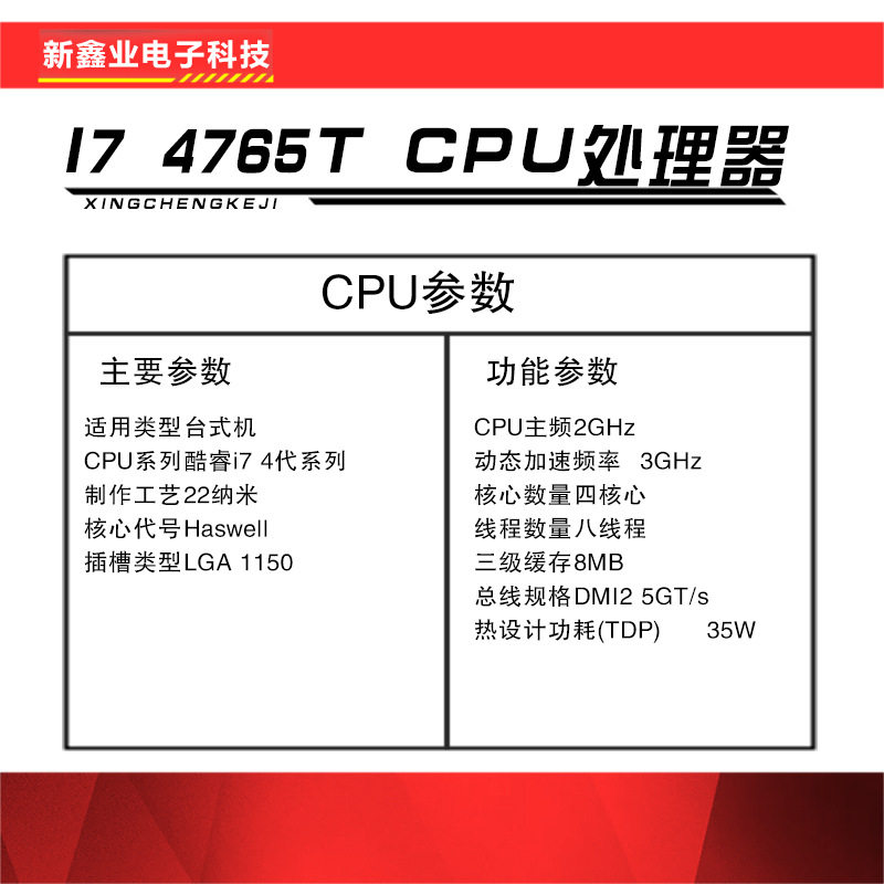 📚 新鑫业电子全新I7 4765T 散片主频2.0G 四核心八线程 CPU 处理器