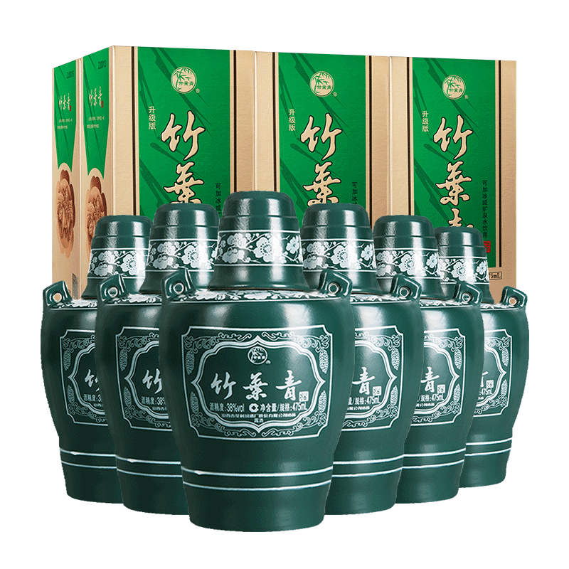 📚 【假一赔十】山西杏花村竹叶青汾酒 38度竹叶青酒坛竹 475mL*6瓶