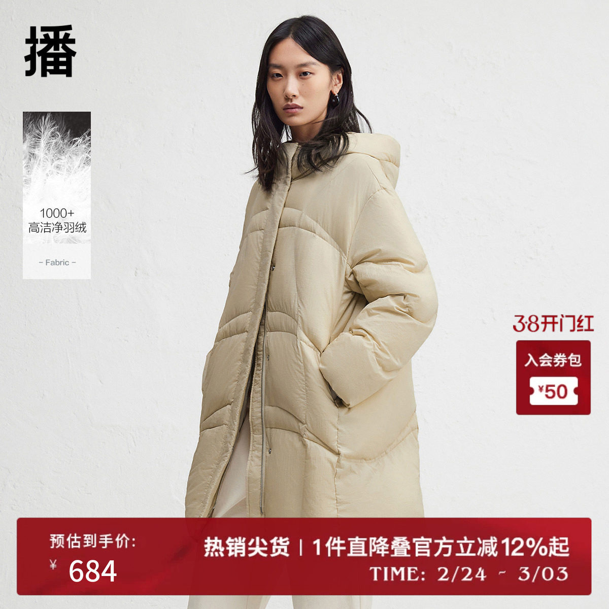 📚 播休闲宽松连帽羽绒服女冬季中长款防寒保暖外套DDR4RD5130