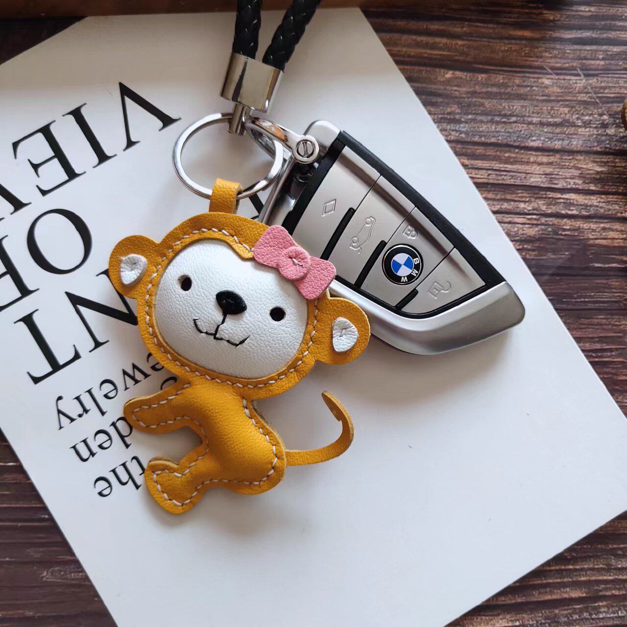 📚 可爱钥匙挂件生肖小猴子创意头层羊皮手工礼品包包挂件DIY材料包