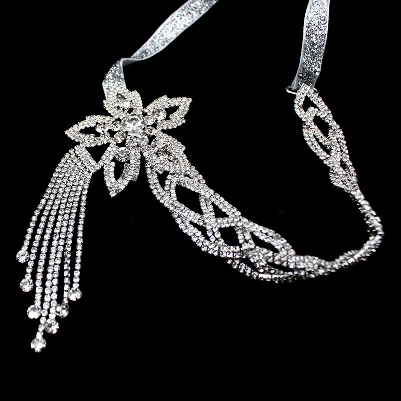 📚 中世纪盖茨比风闪钻花朵流苏发带轻奢小众高级感绑绳发箍舞会头饰