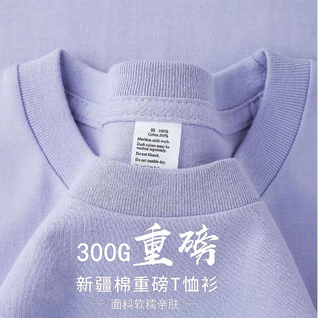 📚 淡紫色300g重磅纯棉短袖t恤夏季圆领宽松百搭打底衫男女基础款ins