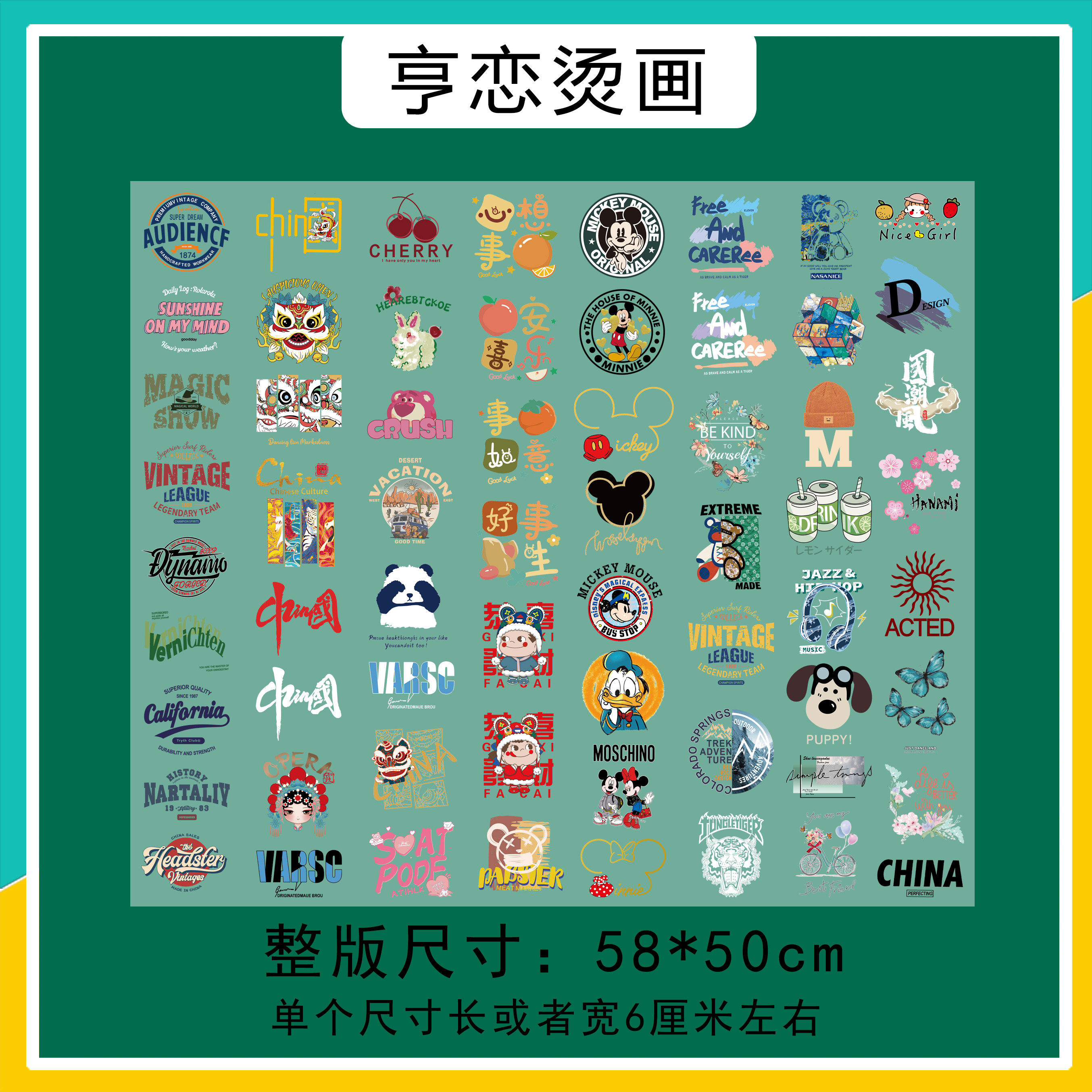 📚 整版大张小胸标字母卡通合集图案热转印装饰贴高弹白墨秒撕烫画贴