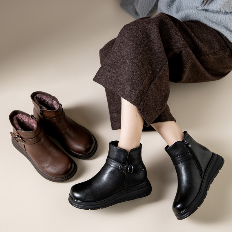 📚 皮毛一体真皮羊毛短靴女冬季加绒加厚妈妈棉鞋防寒保暖雪地棉女靴