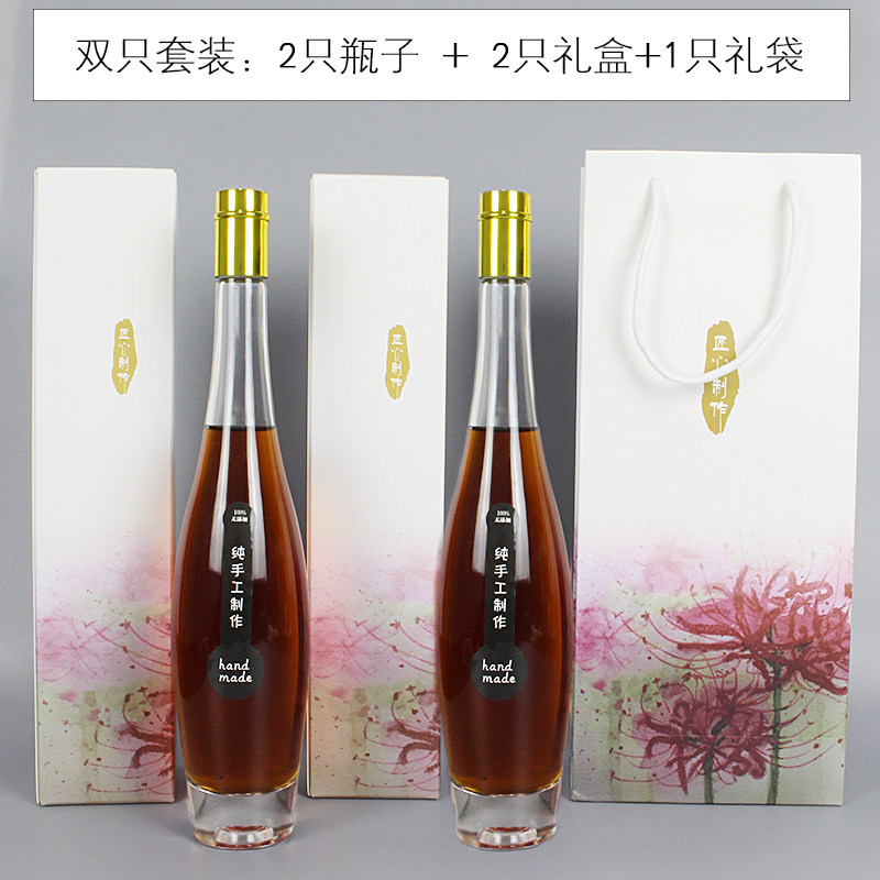 📚 网红一斤装玻璃酒瓶空瓶红酒瓶装送双只礼盒家用375-500ml果酒瓶
