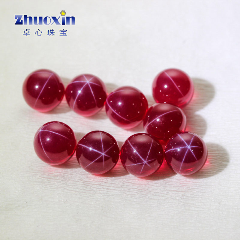 📚 球形圆珠合成红星光石宝石裸石戒面 珠子素面散珠光珠无孔六射线