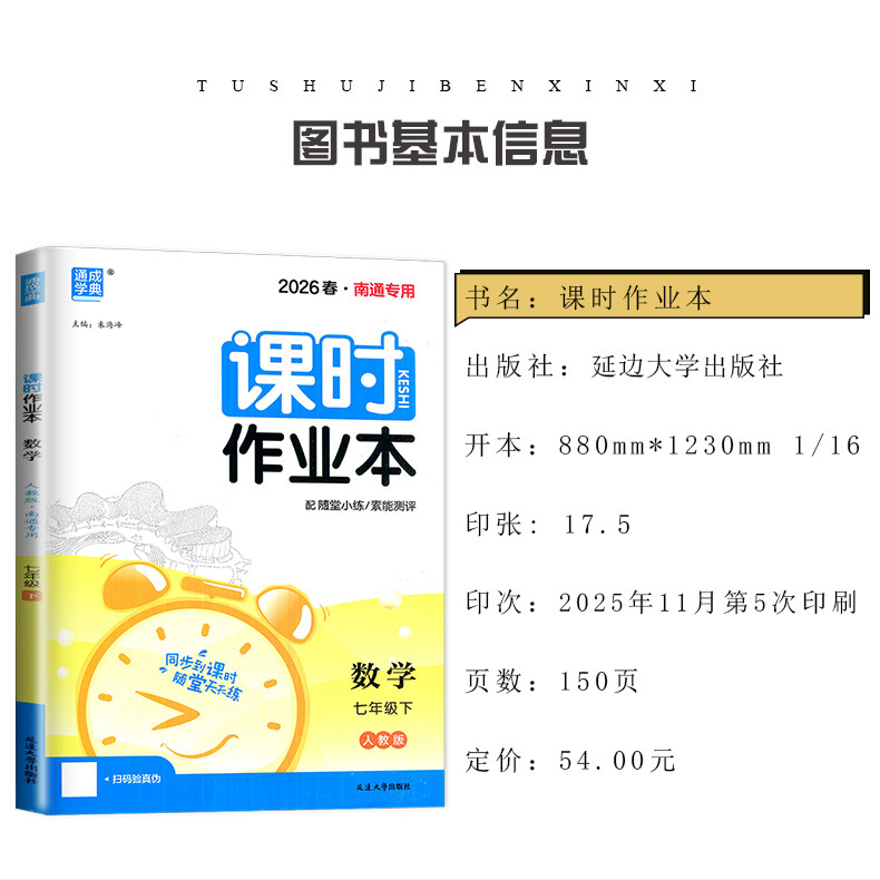 📚 2026课时作业本七八九年级上册下册语文数学英语物理化学道德与法治历史江苏南通专用789任选同步初一二三随堂天天练人教苏科译林