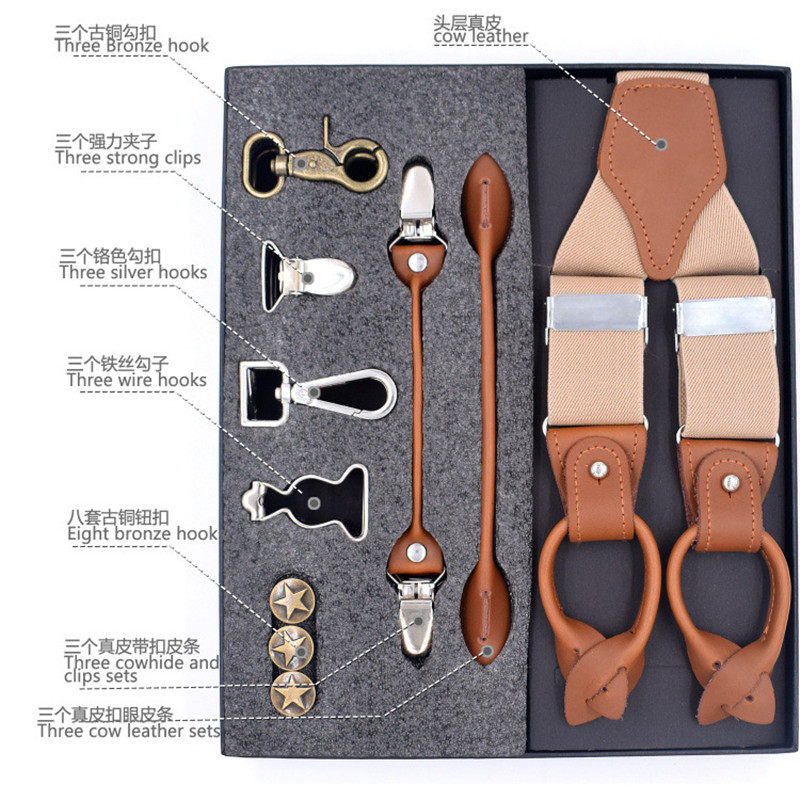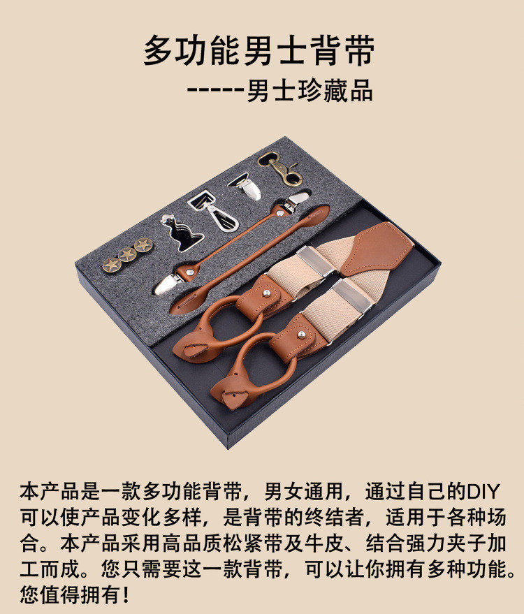 📚 男式背带夹Y型3.5cm西装吊裤带男士松紧防滑肩带多功能礼盒套装