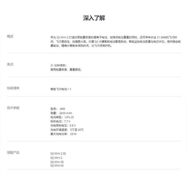 📚 适用于DJI大疆Mini2SE/4K长续航电池电芯2400mAh大容量充电器管家